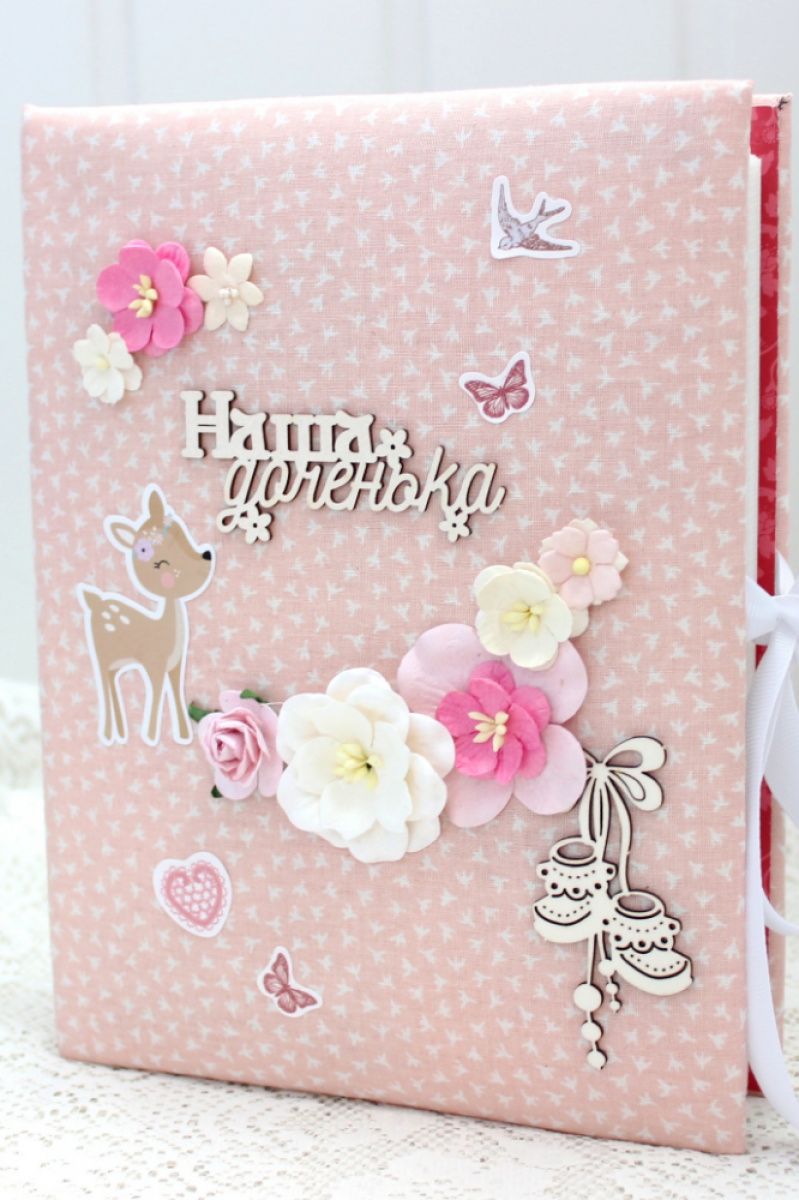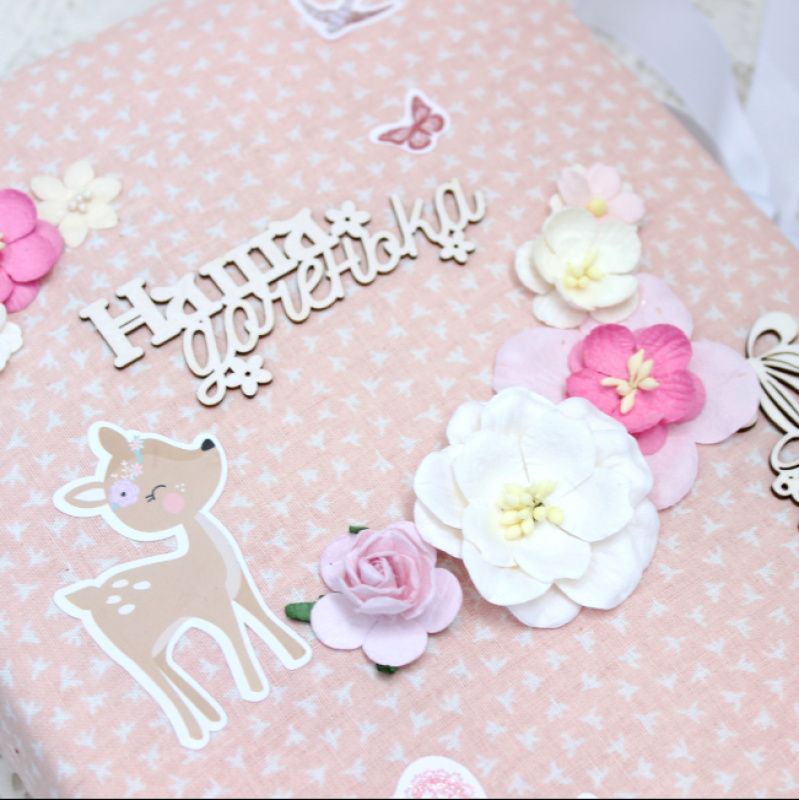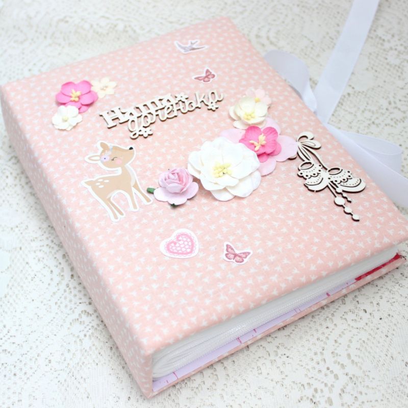 Альбом ручної роботи для дівчинки з файловим блоком на 200 фотографій 10х15. Формат альбому 17х23, тканинна декорована обкладинка на основі синтепону.