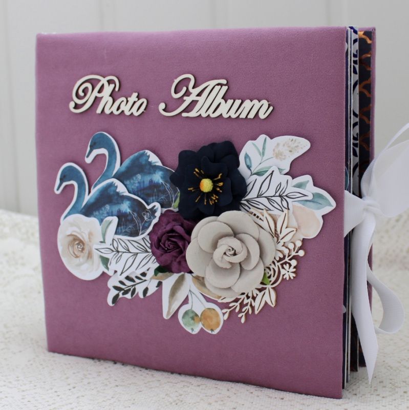 Сімейний альбом ручної роботи з багатьма прикрасами на кожній сторінці. Обкладинка бузкова штучна замша, формат альбому 20х20, всередині 8 декорованих сторінок, розрахований альбом до 40 фотографій. Такий альбом красиво збереже ваші найтепліші спогади, а також може стати оригінальним подарунком на весілля чи річницю. Підходить для різних фотографій: сімейних, Love story, весільних. Альбом є у наявності.