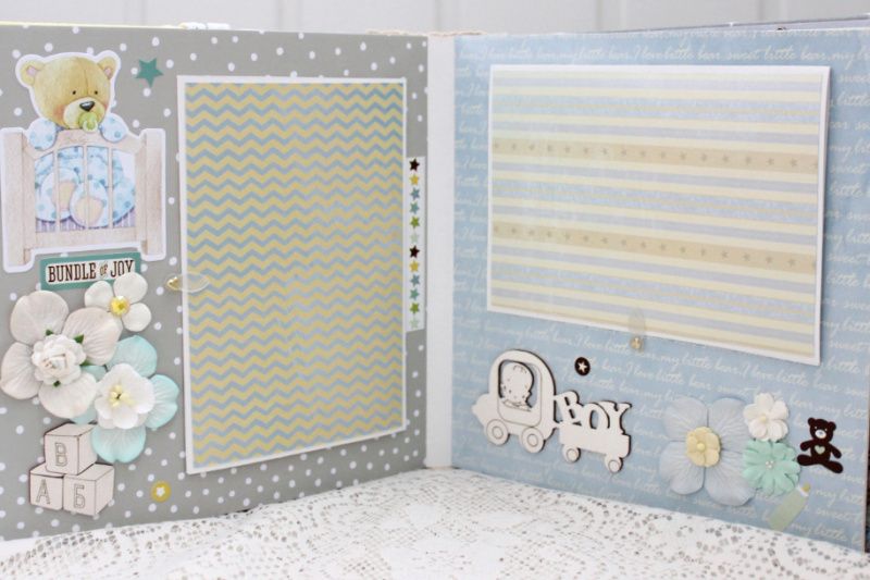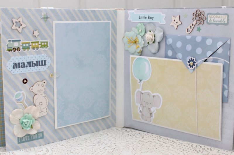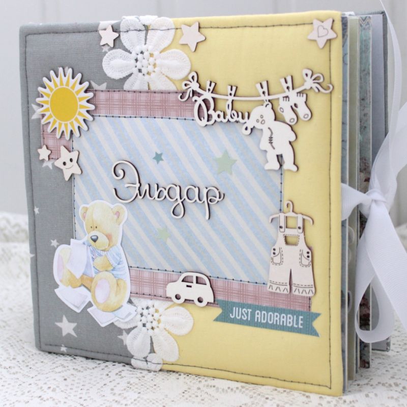 Альбом ручної роботи для хлопчика. Формат альбому 20х20, всередині 10 декорованих сторінок, розрахований до 50 фотографій. Альбом виконаний без певних тем, теми сторінок індивідуальні - на вибір замовника.