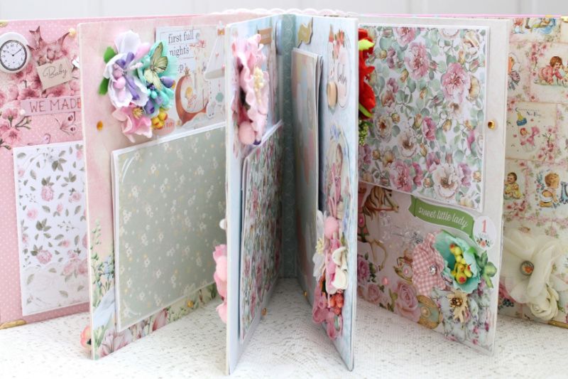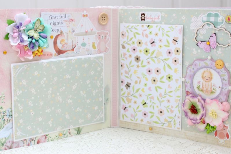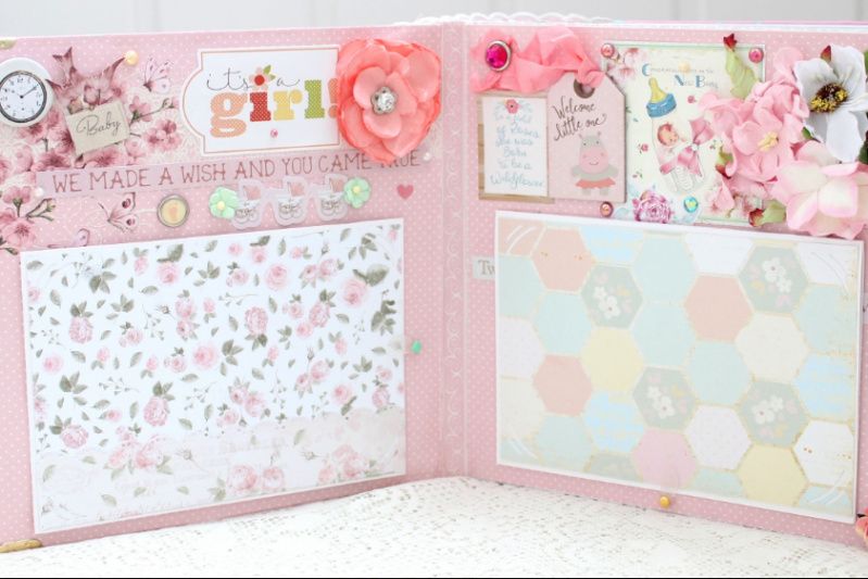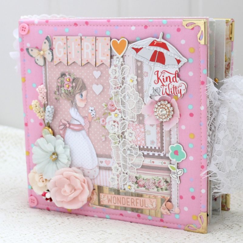 Альбом ручної роботи для дівчинки. Формат альбому 20х20, всередині 10 декорованих сторінок, розрахований до 45 фотографій англійською мовою. Альбом є у наявності.