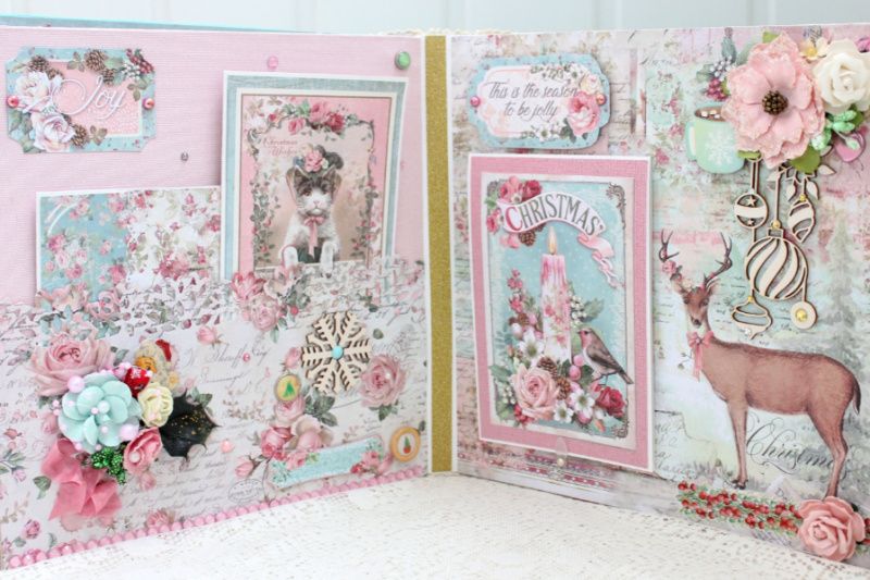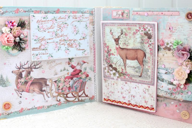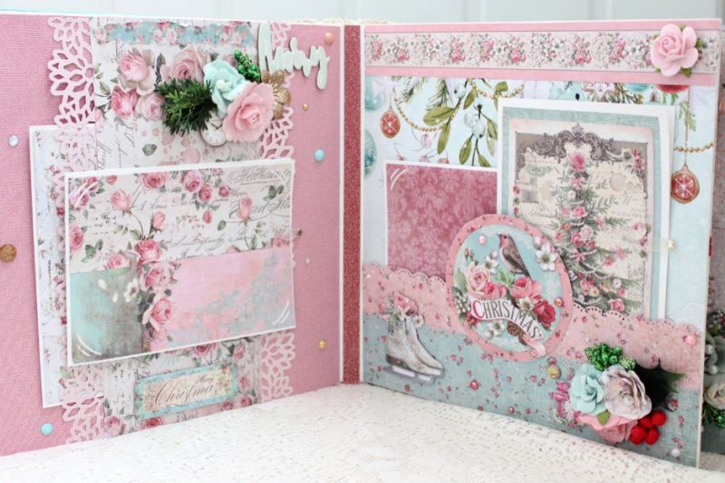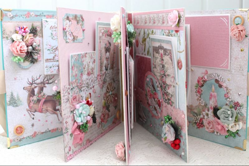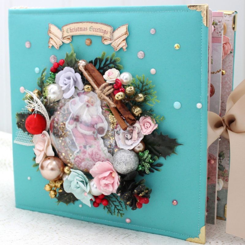 Великий шикарний новорічний фотоальбом ручної роботи з безліччю об'ємних квіткових композицій та різноманітних прикрас на кожній сторінці. Формат альбому 25х25, усередині 8 декорованих сторінок, товщина 9 см, розрахований до 80 фотографій.