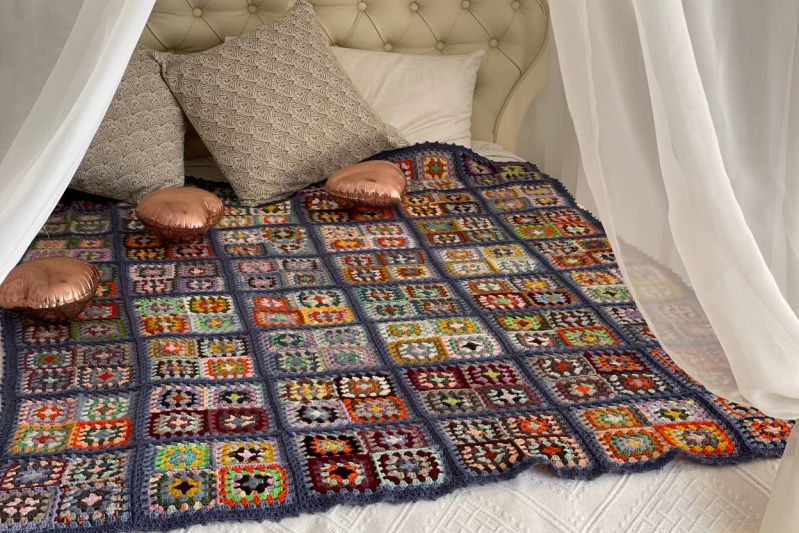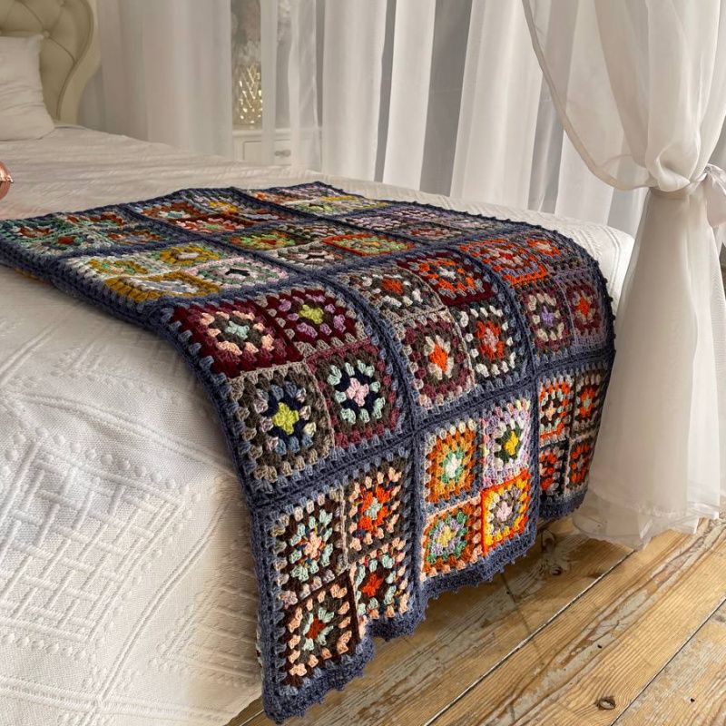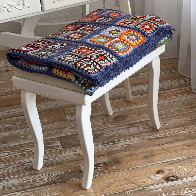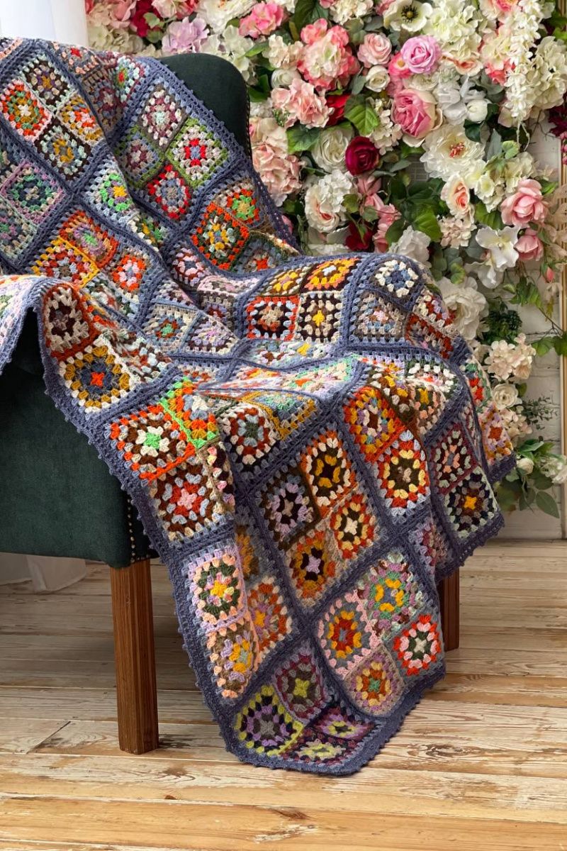 Чудовий плед виконаний у класичному стилі бабусин квадрат. Комбінація квадратів та відтінків – справжній квітучий сад. Пряжа використана шерсть, півшерсть, меринос, як, шовк, бавовна, твід, ангора, рівниця, фасонна нитка. Тактильно дуже приємне. Чудовий подарунок на день народження, ювілей, новосілля, Різдво або Новий рік. Доповнити його можна подушкою, шкарпетками, шаллю. Буде органічний душевний комплект. Розмір пледу 140см х 180см Змінити розмір можна за бажанням.