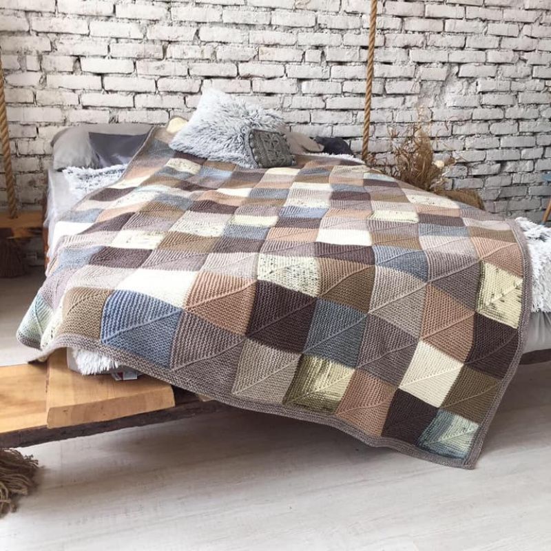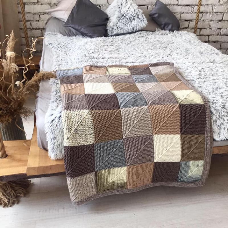 Плед виконаний в стилі бохо, в'язана техніка печворк спицями. Під замовлення можлива ваша індивідуальна колірна гамма і розмір. Ці пледи рідко виходять один в один, тому ваше замовлення має 100% гарантію бути виконаним в єдиному екземплярі. Доповнити комплект можна в'язаній подушкою. Вони представлені в магазині окремим лотом. Або шкарпетки для вас або всієї родини в одній гамі і стилістиці. Вони так само є в магазині окремим лотом. Розмір пледа на фотографії 194см х 155см. Вага пледа 1.4кг. Прати в машинці холодна прання без підігріву з рідким миючим засобом або гелевими капсулами. На фото плед вже випраний.