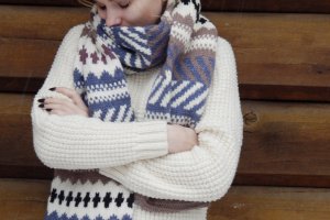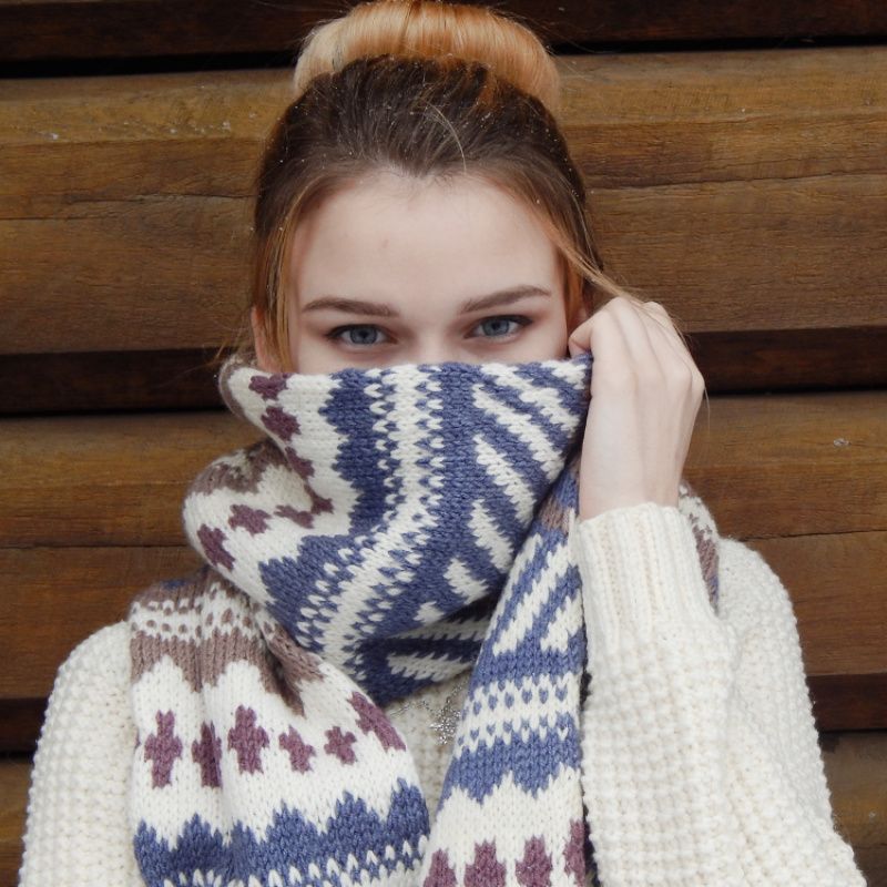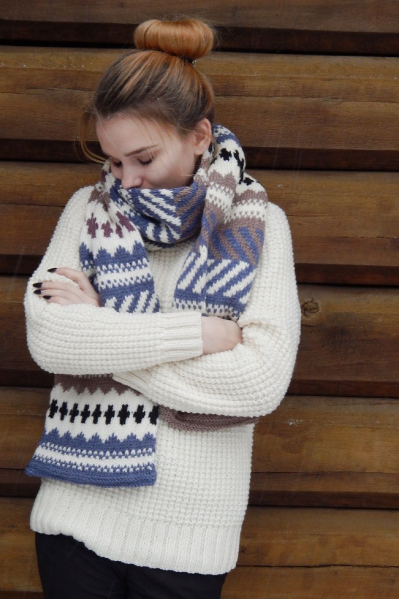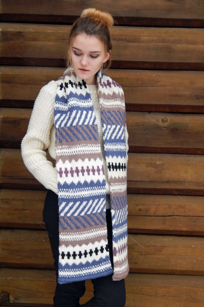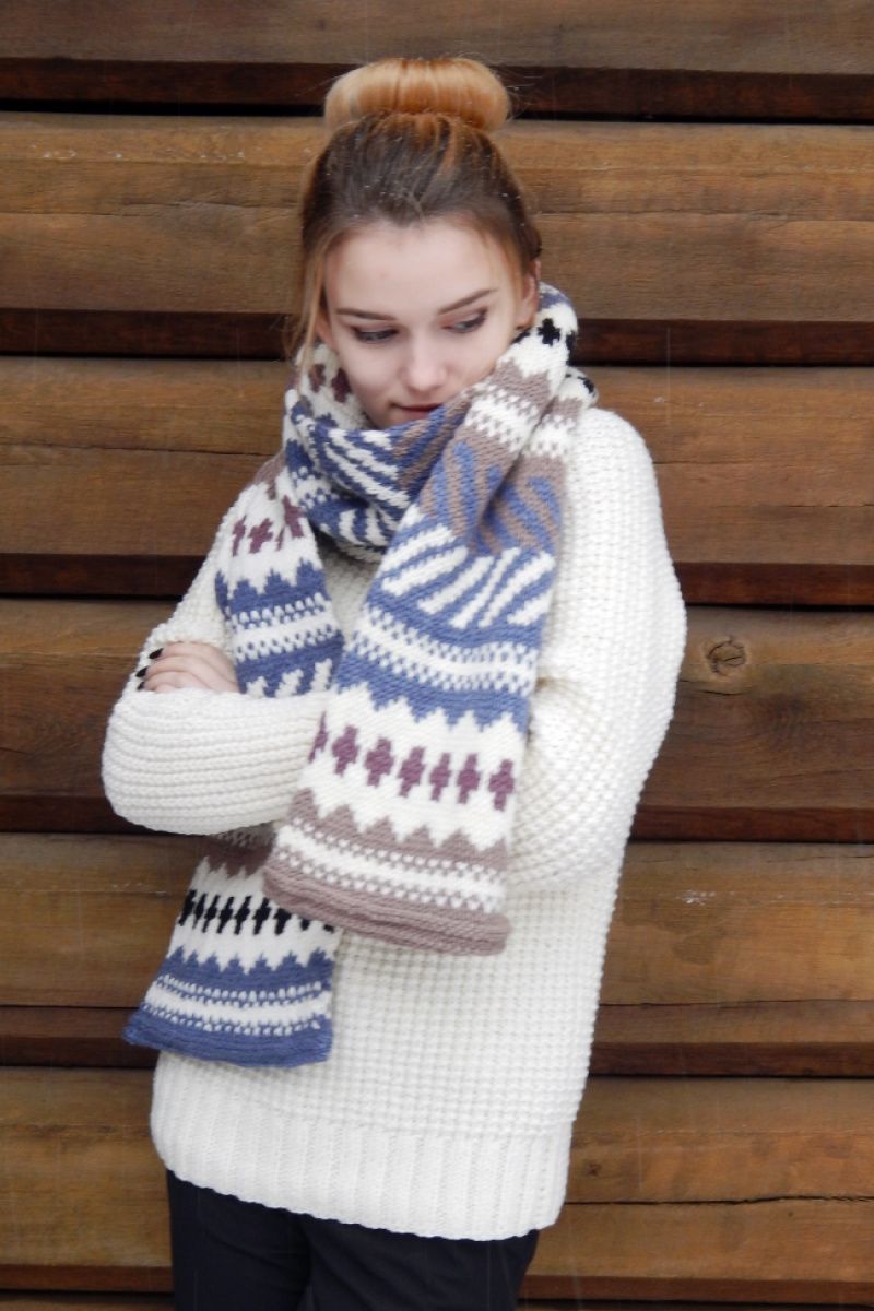 Подвійний теплий шарф пов'язаний вкруговую. У стилі унісекс. Дуже теплий. М'яка напіввовна, жаккард, і хороша довжина. Ширина шарфа 30см довжина 2 метри. Воістину зимовий-зимовий. Класичні забарвлення і візерунок, дозволяють носити його з будь-яким предметом гардеробу верхнього одягу. Можна доповнити рукавицями в такому ж стилі, шапкою або пов'язкою на голову.