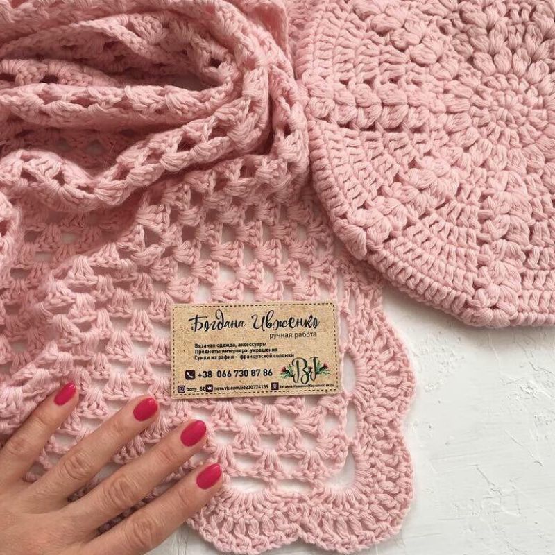 Комплект берет і бактус в ніжно-рожевому кольорі. Виконано із 100% італійського мериносу. Можливий повтор у будь-якому розмірі й кольорі