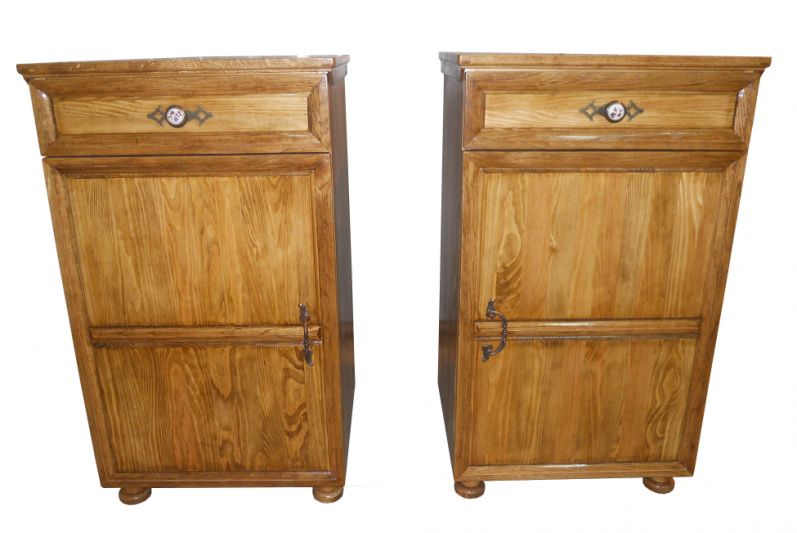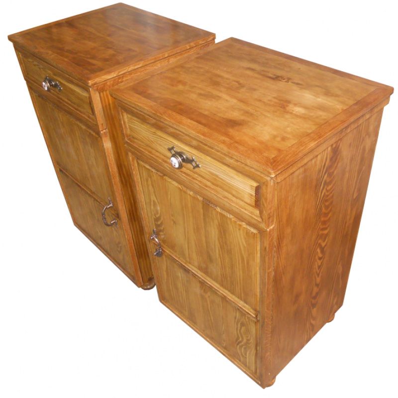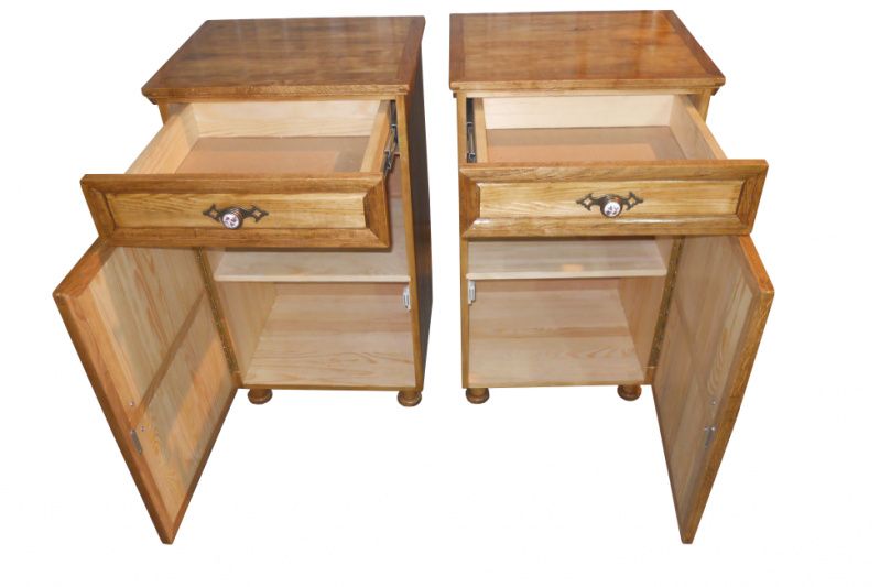 Приліжкові тумби виготовлені в класичному стилі з масива сосни і дуба оброблені коричневим тоном і лаком. Тумби виготовлені високої якості та міцності для максимального строк служби. Для міцності всі з′єднання зроблені шипом, вся дошка вся підібрана без суків, смоли та дефектів. Для рівного встановлення тумб установлені ніжки регульовані по висоті власної конструкції.