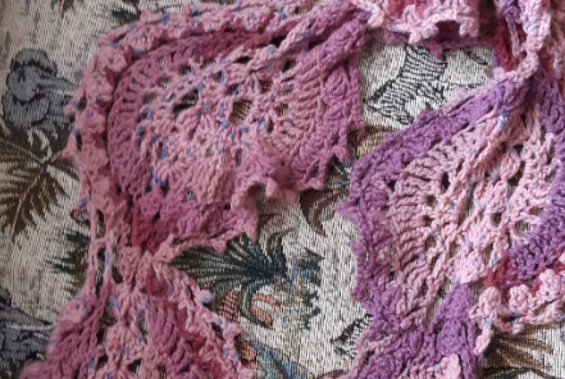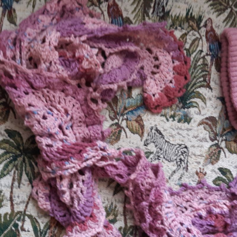 В'язаний шарф ажурної в'язки. Робота виконана гачком. Пряжа суміш вовни з акрилом.