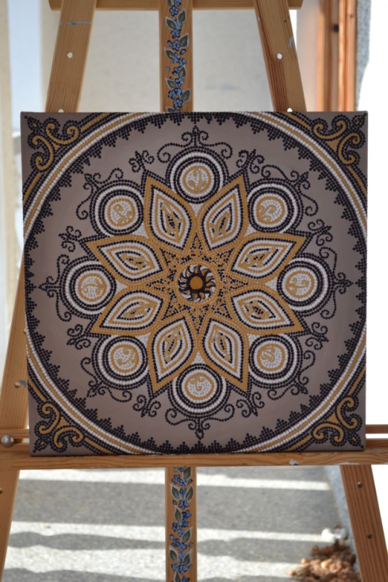 полотно на підрамнику , акрилові фарби , крапковий розпис, потал4