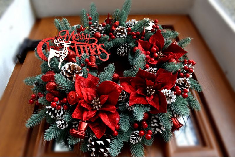 Новорічний віночок ручної роботи діаметром 55см. шикарный дуже красивий та святковий. Буде радувати Вас багато років