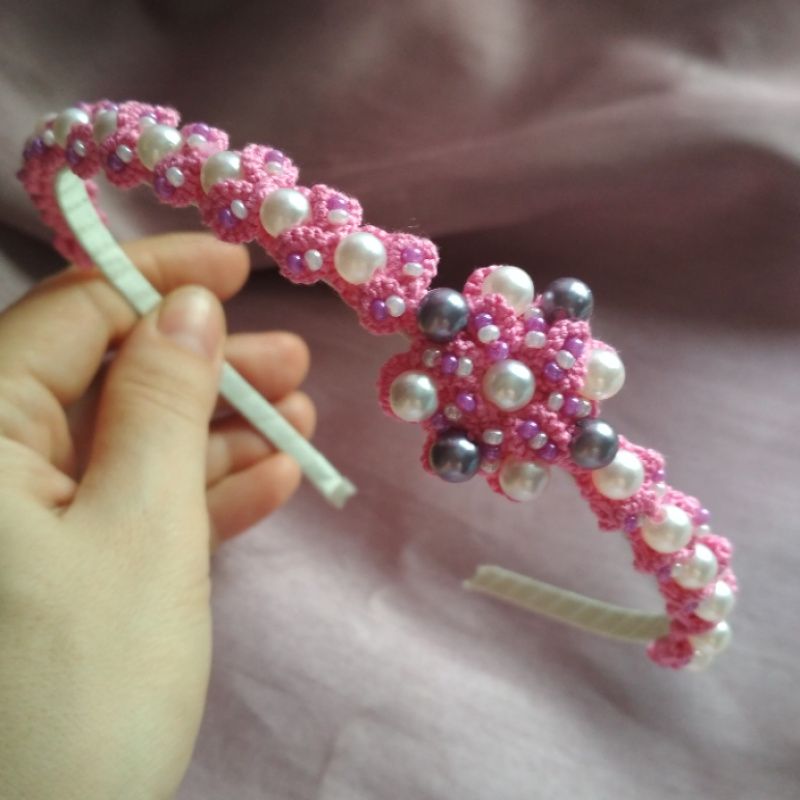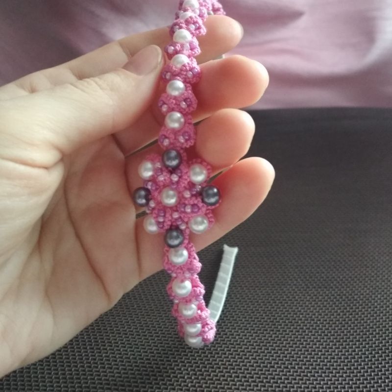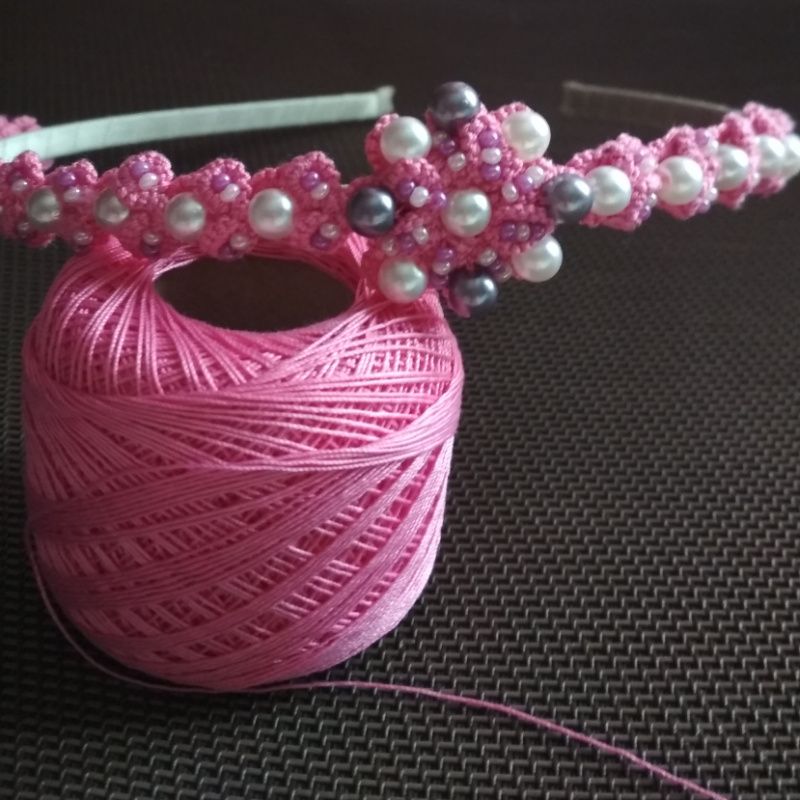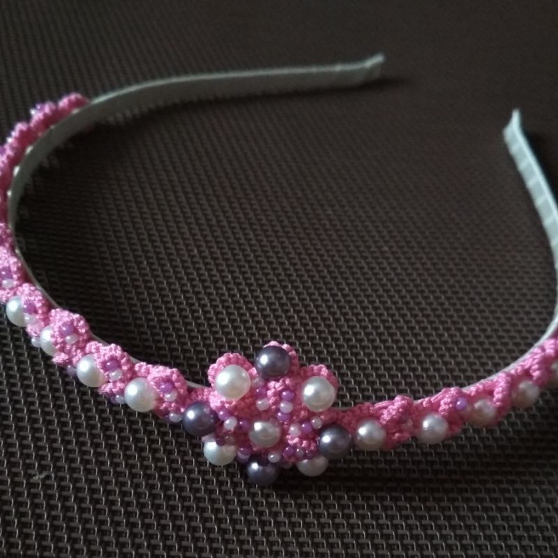 Мереживний обідок для волосся в техніці фриволіте. Прикраса для маленької принцеси! Можливий повтор в іншому кольорі.
