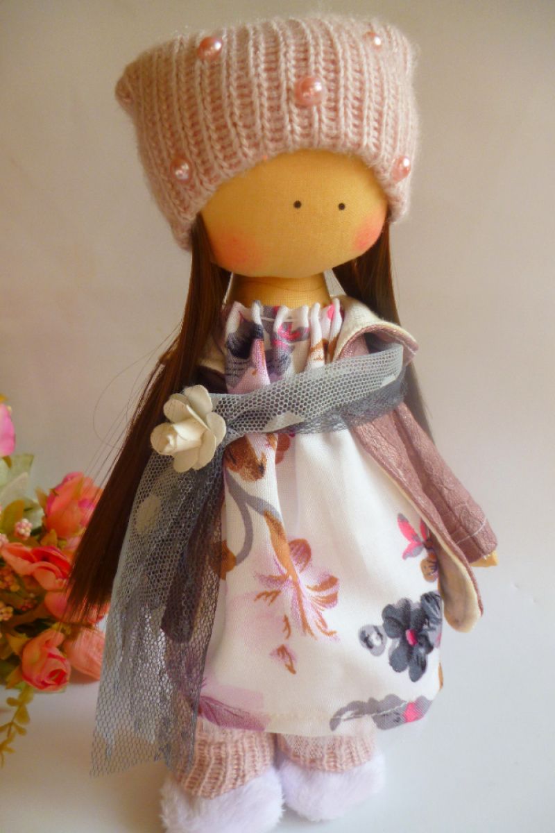 Всі іграшки і ляльки екологічно чисті, прості і стильні. Вони виготовлені з кращих натуральних матеріалів, відібраних з особливою ретельністю і точністю. Якщо ви шукаєте незвичайні і модні іграшки, то ви потрапили в потрібне місце. Кожна лялька зроблена з великою любов'ю і частинкою моєї душі! Я щиро сподіваюся розділити з вами свою любов до тканинних лялькам, і вони ніколи не залишать вас байдужими! Ви закохаєтесь в неї миттєво! Виконана з матеріалів високої якості. (Тіло - 100% бавовна, наповнювач - екологічно чисте синтетичне волокно (є сертифікат якості) волосся - м'які і дуже приємні на дотик) Висота близько 30 см. Колір волосся можна змінити
