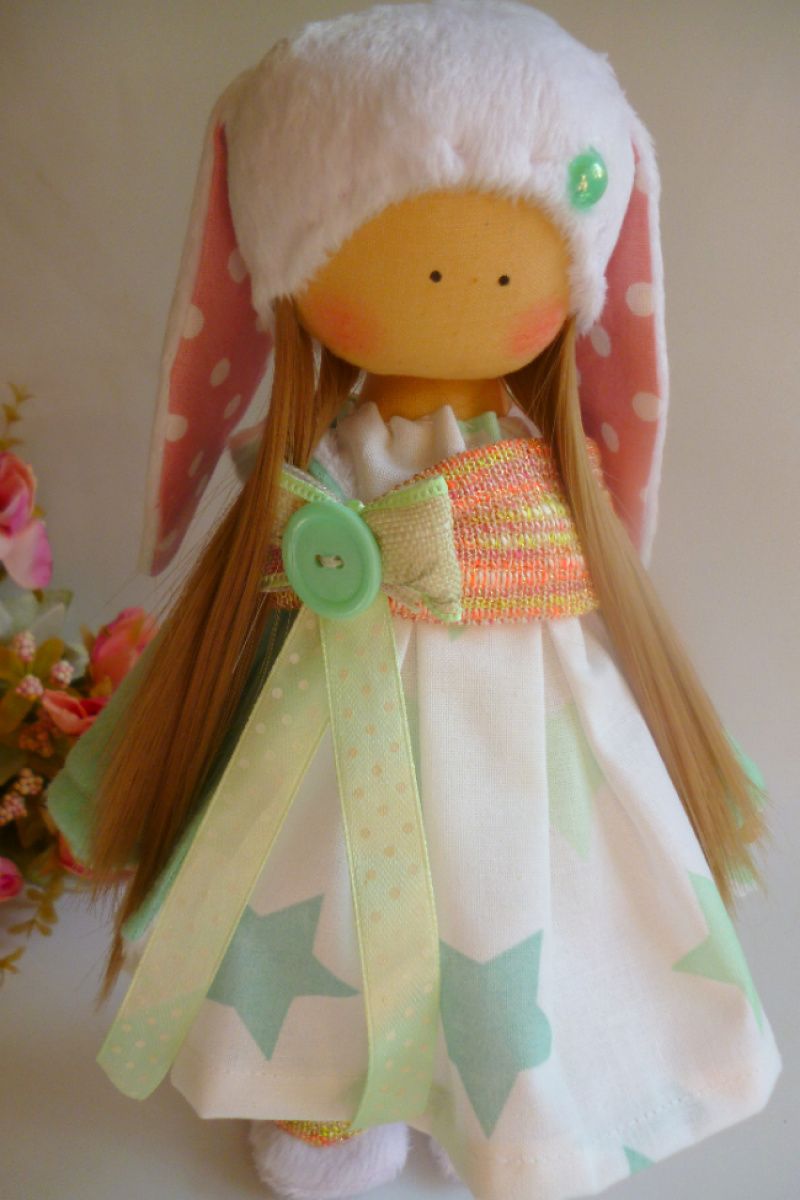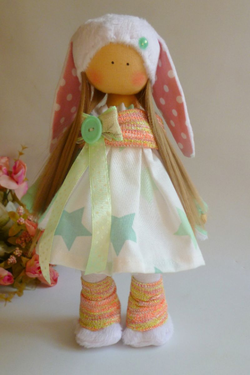 Всі іграшки і ляльки екологічно чисті, прості і стильні. Вони виготовлені з кращих натуральних матеріалів, відібраних з особливою ретельністю і точністю. Якщо ви шукаєте незвичайні і модні іграшки, то ви потрапили в потрібне місце. Кожна лялька зроблена з великою любов'ю і частинкою моєї душі! Я щиро сподіваюся розділити з вами свою любов до тканинних лялькам, і вони ніколи не залишать вас байдужими! Ви закохаєтесь в неї миттєво! Виконана з матеріалів високої якості. (Тіло - 100% бавовна, наповнювач - екологічно чисте синтетичне волокно (є сертифікат якості) волосся - м'які і дуже приємні на дотик) Висота близько 30 см. Колір волосся можна змінити