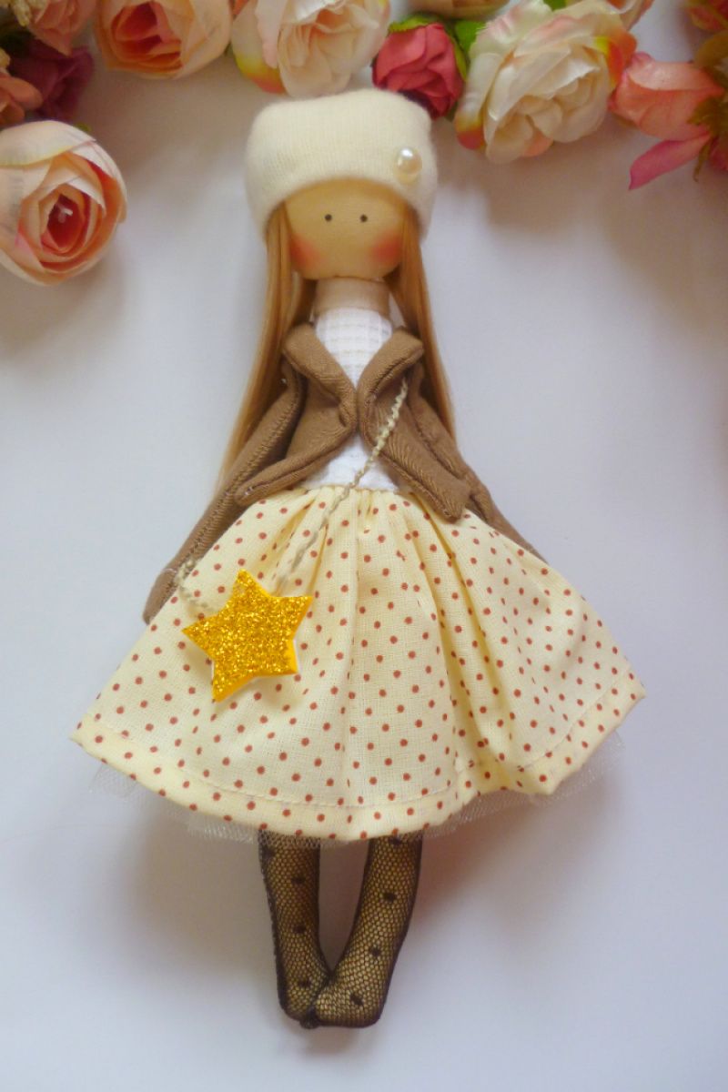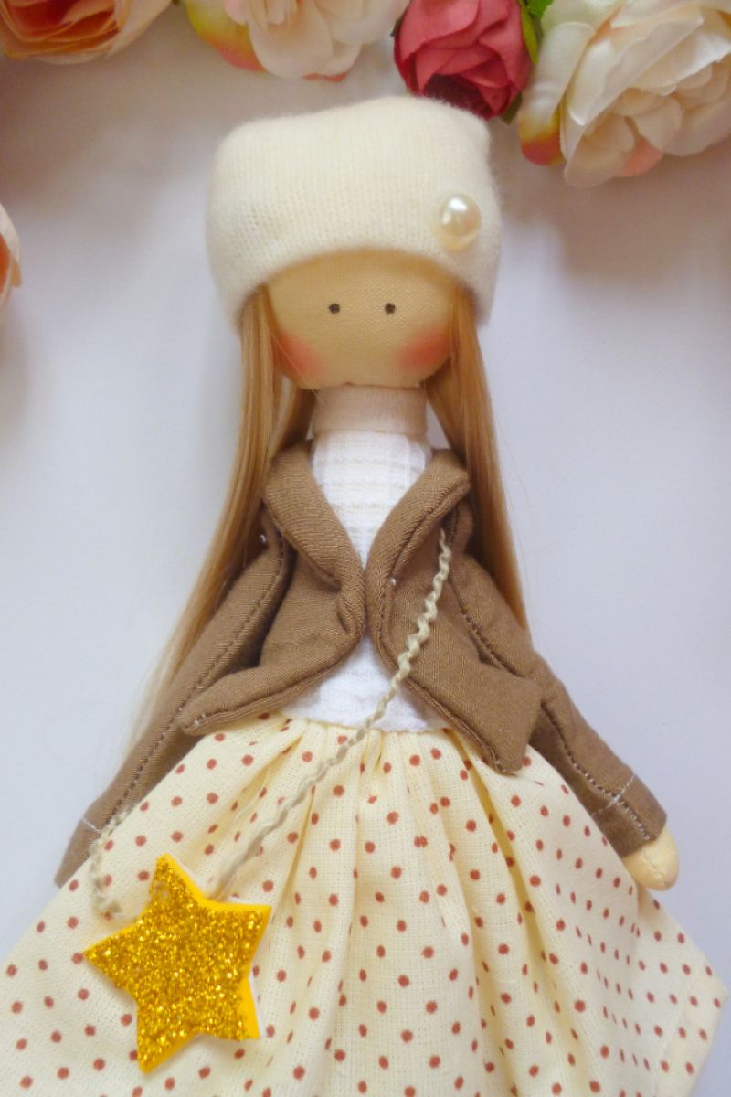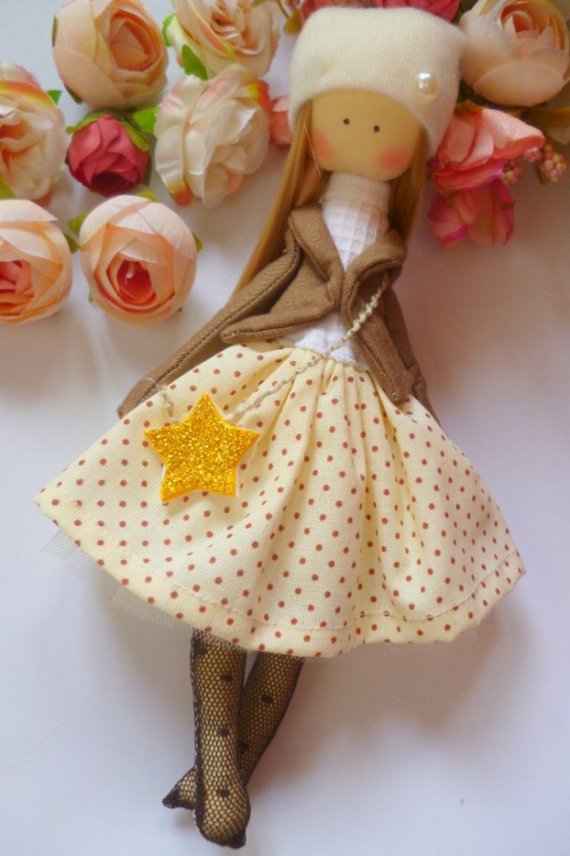Всі іграшки і ляльки екологічно чисті, прості і стильні. Вони виготовлені з кращих натуральних матеріалів, відібраних з особливою ретельністю і точністю. Якщо ви шукаєте незвичайні і модні іграшки, то ви потрапили в потрібне місце. Кожна лялька зроблена з великою любов'ю і частинкою моєї душі! Я щиро сподіваюся розділити з вами свою любов до тканинних лялькам, і вони ніколи не залишать вас байдужими! Ви закохаєтесь в неї миттєво! Виконана з матеріалів високої якості. (Тіло - 100% бавовна, наповнювач - екологічно чисте синтетичне волокно (є сертифікат якості) волосся - м'які і дуже приємні на дотик) Висота 25 см