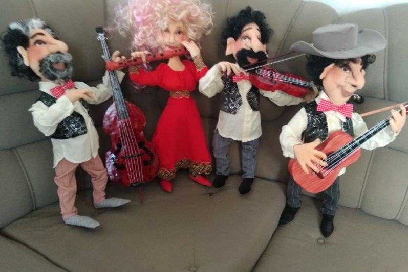 Букет з троянд або їстівний букет дуже ефектний подарунок, але на жаль недовговічний Текстильні інтер'єрні ляльки МУЗИКАНТИ принесуть у Вашу оселю багато позитивних емоцій на довгий час Стоять самостійно Одяг не знімається Можна придбати окремо Ціна однієї ляльки 700 грн Висота 50 см