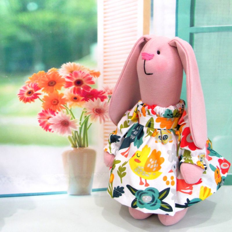 Заєць Тільда в весняно-літніх тонах Послужить інтер'єрним прикрасою заміського дачного будинку, затишній спальні. Чудовий подарунок до свят, сімейних торжеств, ювілеїв. Зайчик виконаний з трикотажу, кінцівки міцно закріплені на гудзиковому кріпленні, стійко стоїть Одяг не знімається. Оригінальний і милий подарунок ручної роботи, зроблений з любов'ю.