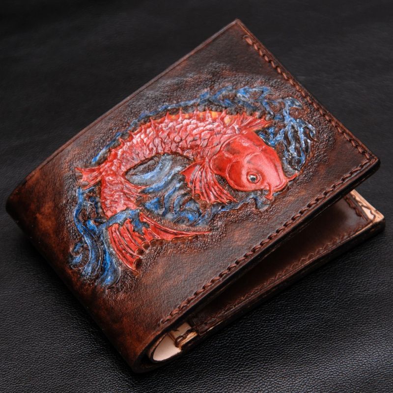Шкіряний гаманець ручної роботи з натуральної шкіри рослинного дубління. Ручне тиснення, фарбування. Всередині 4 відділення для карток, карман для монет, 2 додаткових відділення (для карток, чеків тощо). Можливе тиснення за вашим малюнком