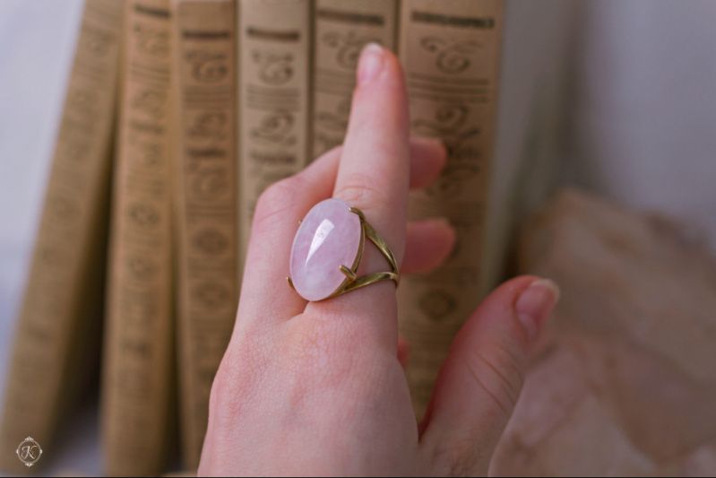 Ніжне кільце з латуні і рожевого кварцу. Прикраса зроблена на рознімною основі що дозволить ідеально відрегулювати його під Ваш пальчик. Розмір 16-19 (регулюється). Розмір каменю 25х18 мм. Надійно зафіксований 4-ма лапками каста. На замовлення можу виготовити з іншим каменем. Обов'язково уточнюйте наявність каменів! Прикраси відправляю протягом 1-2 днів після замовлення (неділя вихідний). Замовлення приходить в подарунковій або еко коробочці на вибір (деталі в профілі). Уникати контакту з хімічно активними речовинами.