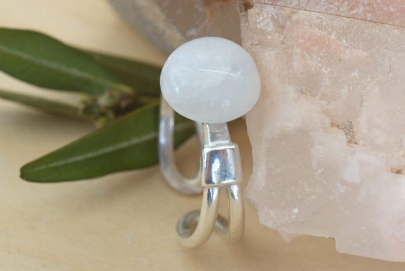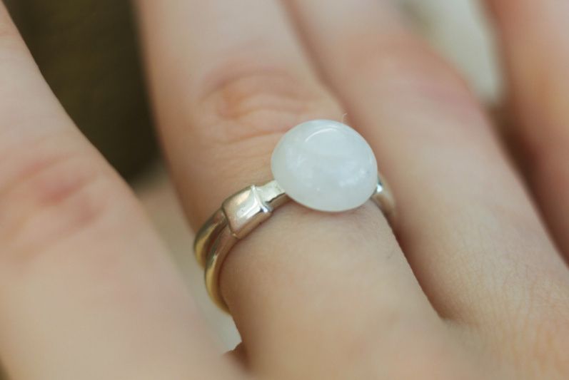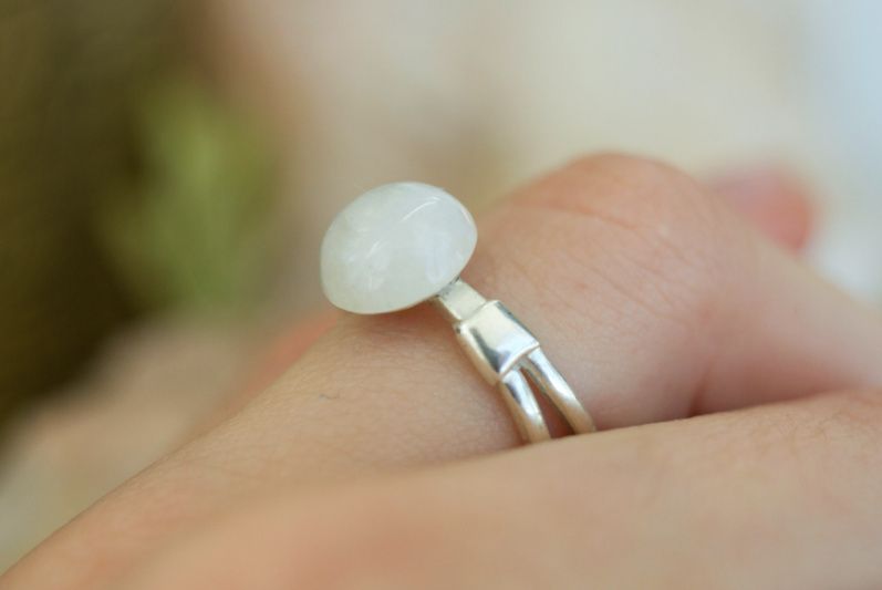Ніжне кільце зі срібла 925 проби та місячного каменю. Прикраса зроблена на роз'ємній основі, завдяки чому стискаючи-розтискаючи можна змінювати його розмір. Що зручно, якщо Ви не знаєте точний розмір (або купуєте на подарунок) або плануєте носити обручку на різних пальцях. Кріплення каменю – ювелірний клей Beadfix фірми Beadalon (США). Він спеціально розроблений для прикріплення каменю до металу (або металу до металу). Таким чином, Ви можете не перейматися втратою каменю! На замовлення можу зробити аналогічне кільце, але з іншим каменем. Обов'язково уточнюйте наявність каміння! Розмір 16-19 (регулюється) Розмір каменю 9х9 мм Вага срібла 2,05 г Зверніть увагу, так як кільце ручної роботи, на ньому немає проби!
