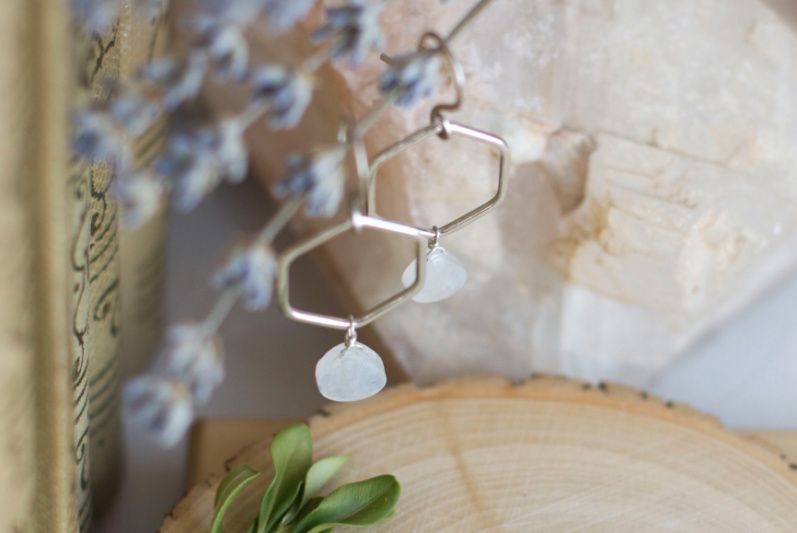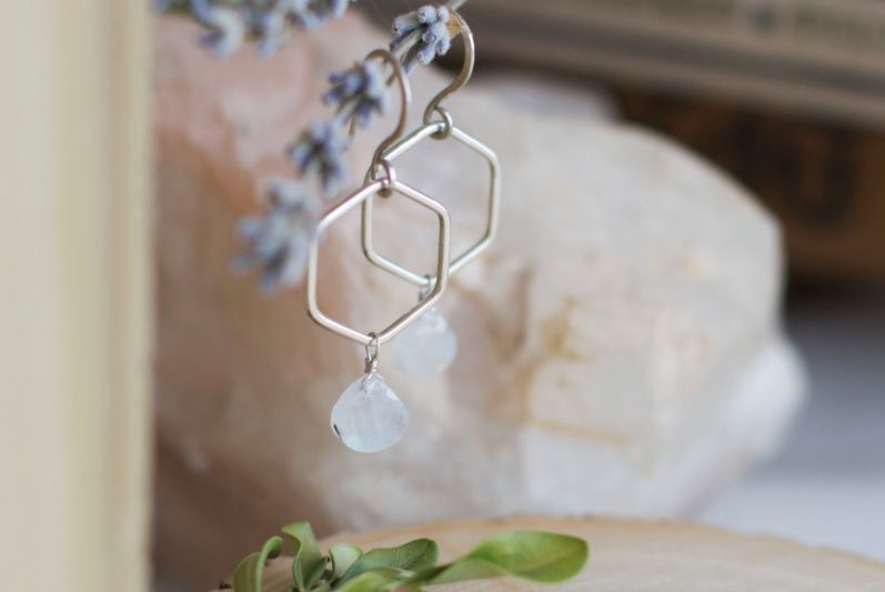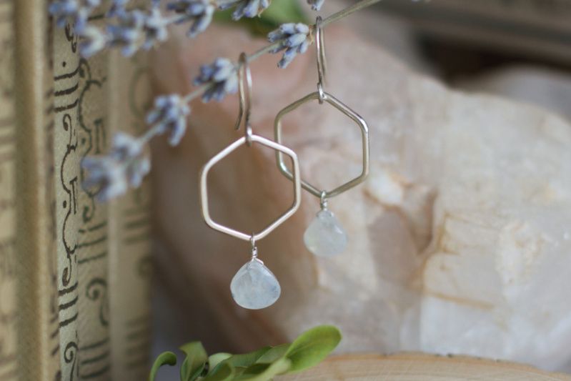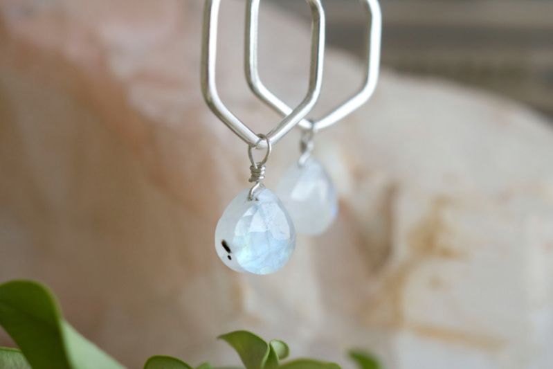 Класичні сережки підвіски виконані зі срібла 925 проби і яскравих бріолет місячного каменю. Центральний елемент - бджолина сота з якої, немов крапля меду, ось-ось зісковзне місячний камінь. Я приділяю особливу увагу кріпленню бріолет, фіксуючи обидва краї дроту. Тим самим, Ви можете не переживати що втратите камінь простим зачепленням за одяг. Зверніть увагу! Базовий фон місячного каменю - білий з прозорими прожилками, а при повороті його під різними кутами з'являється яскравий ніжно-синій, золотий і жовтий перелив. Відобразити цей перелив на фото дуже складно, лише на одному з великих планів мені майже вдалося це зробити. Напишіть мені і я скину Вам додаткові фото / відео каменів. Розмір 40х15мм (40мм від початку швензи до нижньої частини бріолет) Вага 1 сережки 1,1 г Матеріал: срібло 925 проби, бріолет-крапля з натурального місячного каменю. Зверніть увагу, так як сережки ручної роботи, на них немає проби! Прикраси відправляю протягом 1-2 днів після замовлення. Замовлення приходить в подарунковій або еко коробочці на вибір Безкоштовна доставка від 500 грн