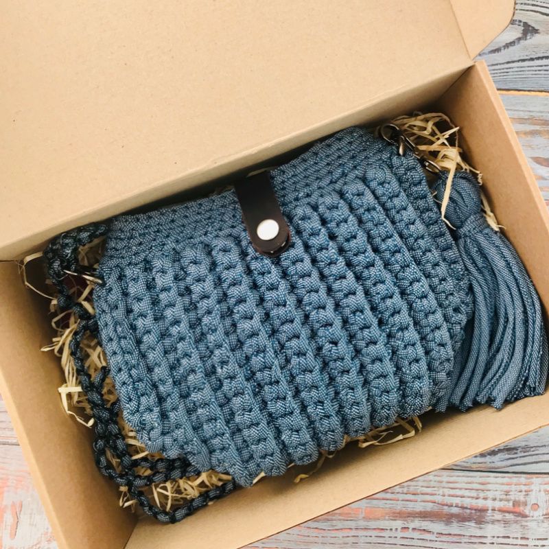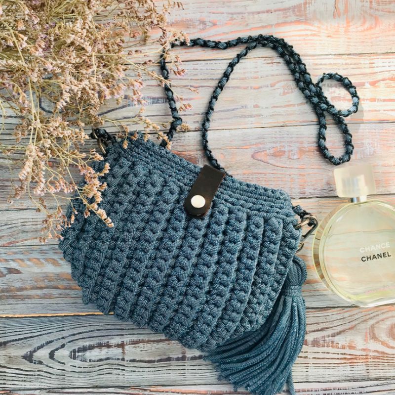 Сумка ракушка пов'язана з трикотажної Турецької пряжі 100% бавовна, всередині на підкладці, застібка клапан з натуральної шкіри, довжина ланцюжка 110 см, декор кисть знімна. Розмір сумочки 21 * 18. На замовлення в будь-якому кольорі, ціна залежить від фурнітури.