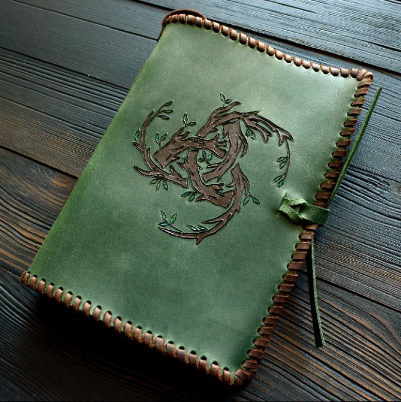 Шкіряний блокнот з кельтським триквертом в рослинному оздобленні.