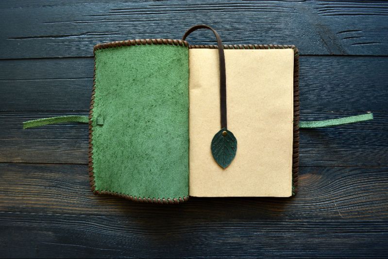 Всередині блокнот має закладинку ляссе у формі листочка.