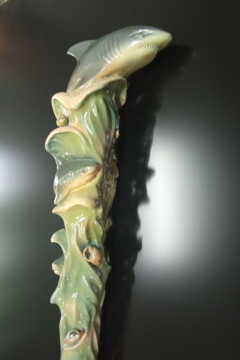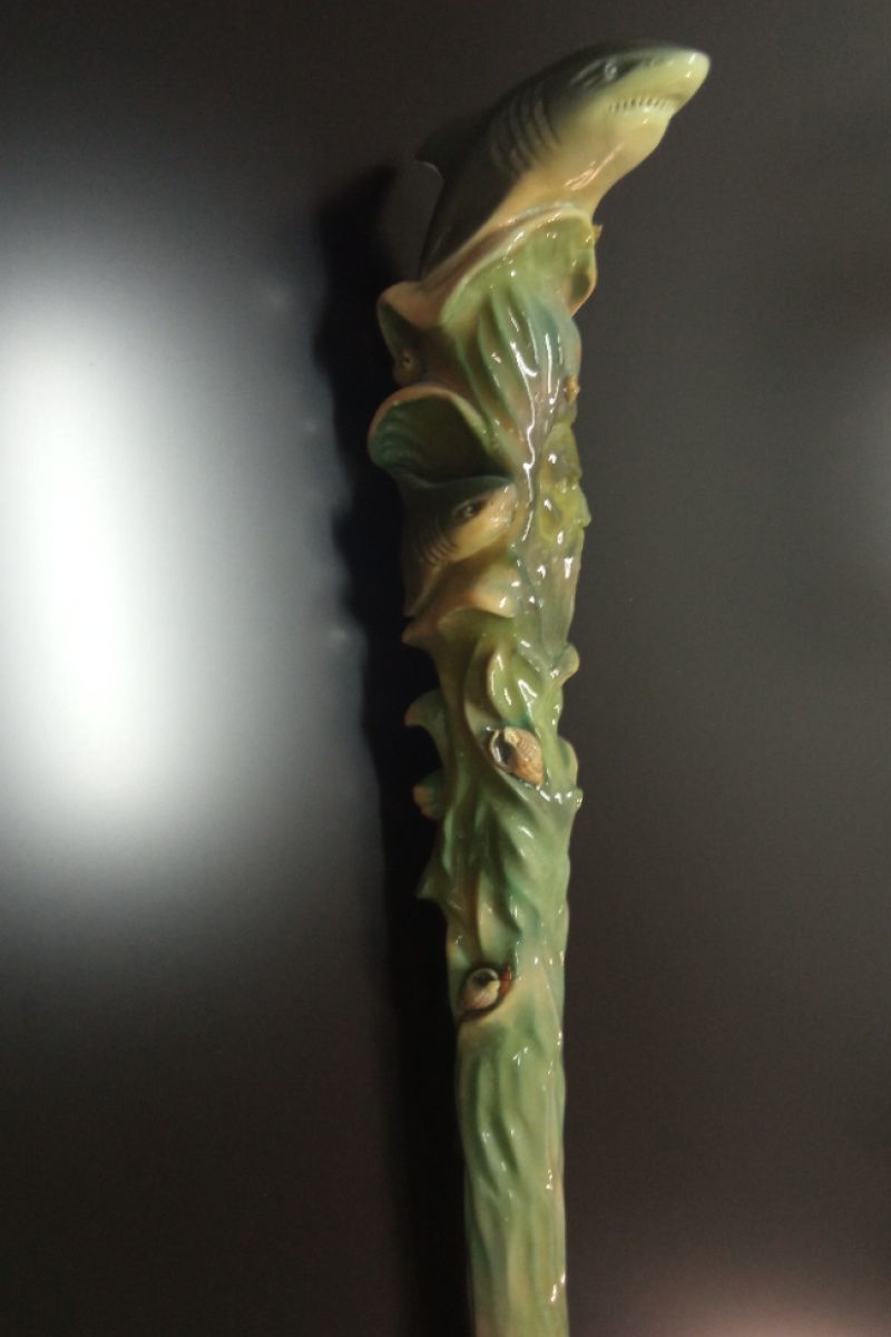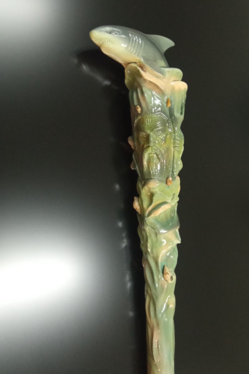 Опорна тростину для ходьби акула молодьожная. поєднує в собі красу, надійність і практичність. Ретельно оброблені і відполіровані поверхні шафта і рукояті, з'єднані з виглядом Посейдона, надають тростини гідний, представницький вигляд. Палиця опорна .Трость в наявності, термін доставки 4-7 днів після підтвердження вами замовлення. Довжина тростини: будь-яка Макс.нагрузка: До 180 кг. АВТОРСЬКА РОБОТА. Під замовлення. Опис: авторська робота, ексклюзив, вкрай обмежена серія Технологія виробництва: різьблення по дереву Матеріал рукояті: клен Матеріал шафта: натуральне дерево -клен з бронзою Обробка: тонування рукояті, патенірованіе, італійський лак Навантаження: до 180 кг Довжина: будь-яка Наконечник: іміджевий, в металевому обідку Вага: 400 гр Країна виробник: тростини від Олександра.