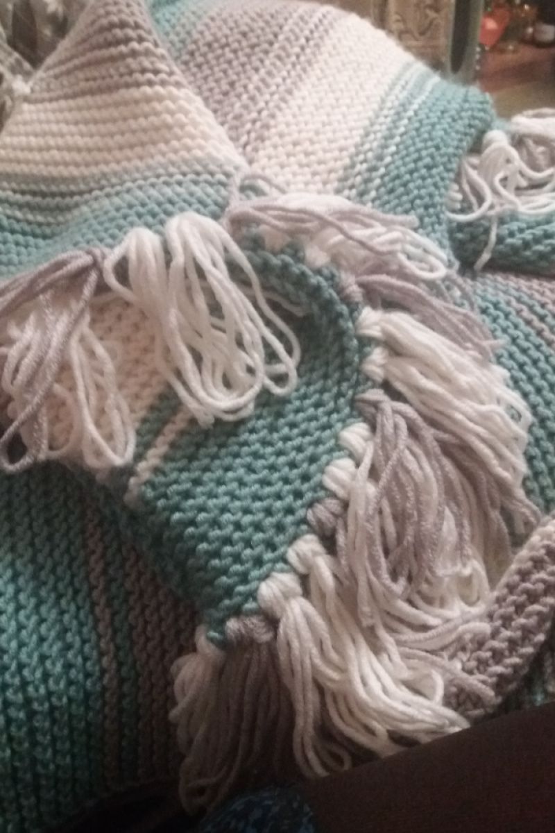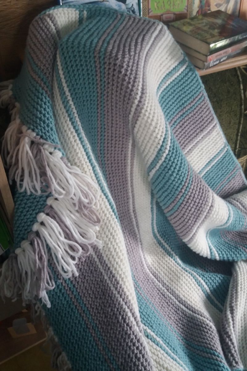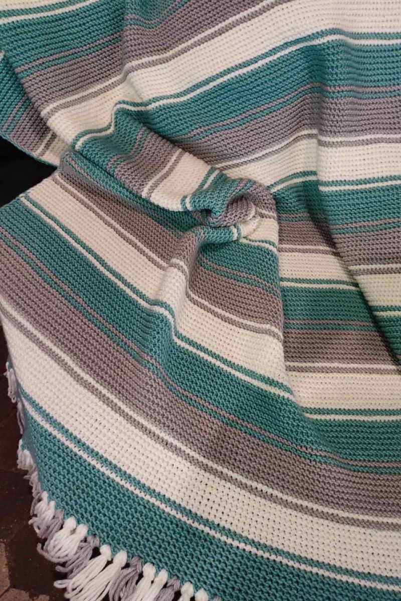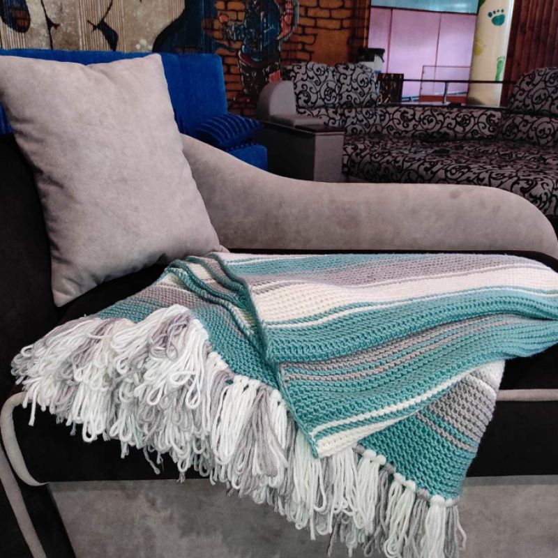 Стильний плед з якісної напівшерстяної пряжі в топовому поєднанні кольорів. Виконано з любов'ю, а отже він обов'язково огорне Вас ніжним теплом та подарує яскраві емоції!