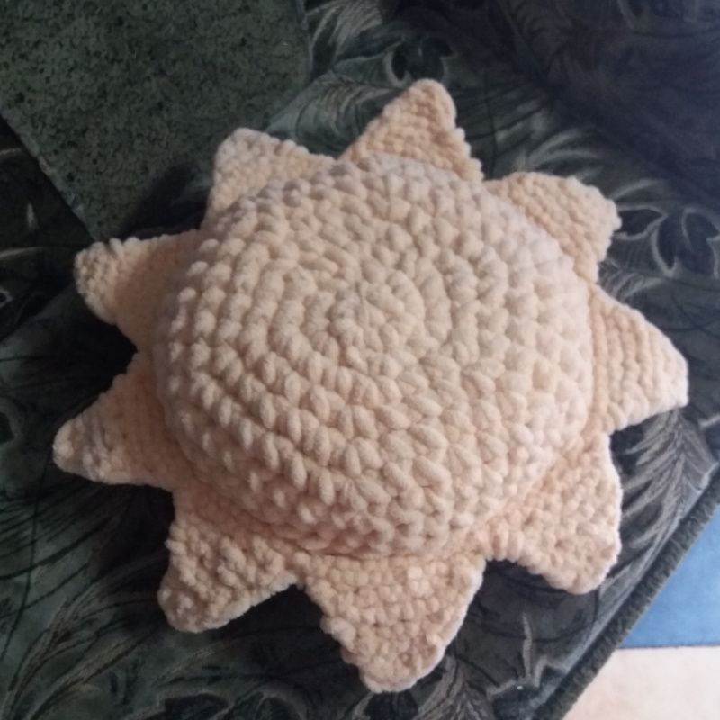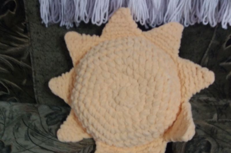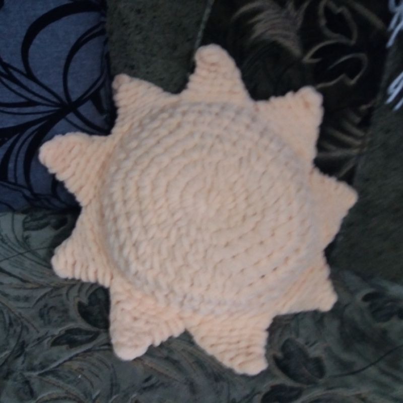 Подушка-іграшка з ніжної гіпоалергенної пряжі. Яскраве та ніжне сонечко обов'язково стане улюбленою іграшкою Вашого маляти. Виконано з любов'ю!) Наповнювач - холофайбер в трикотажному чохлі.
