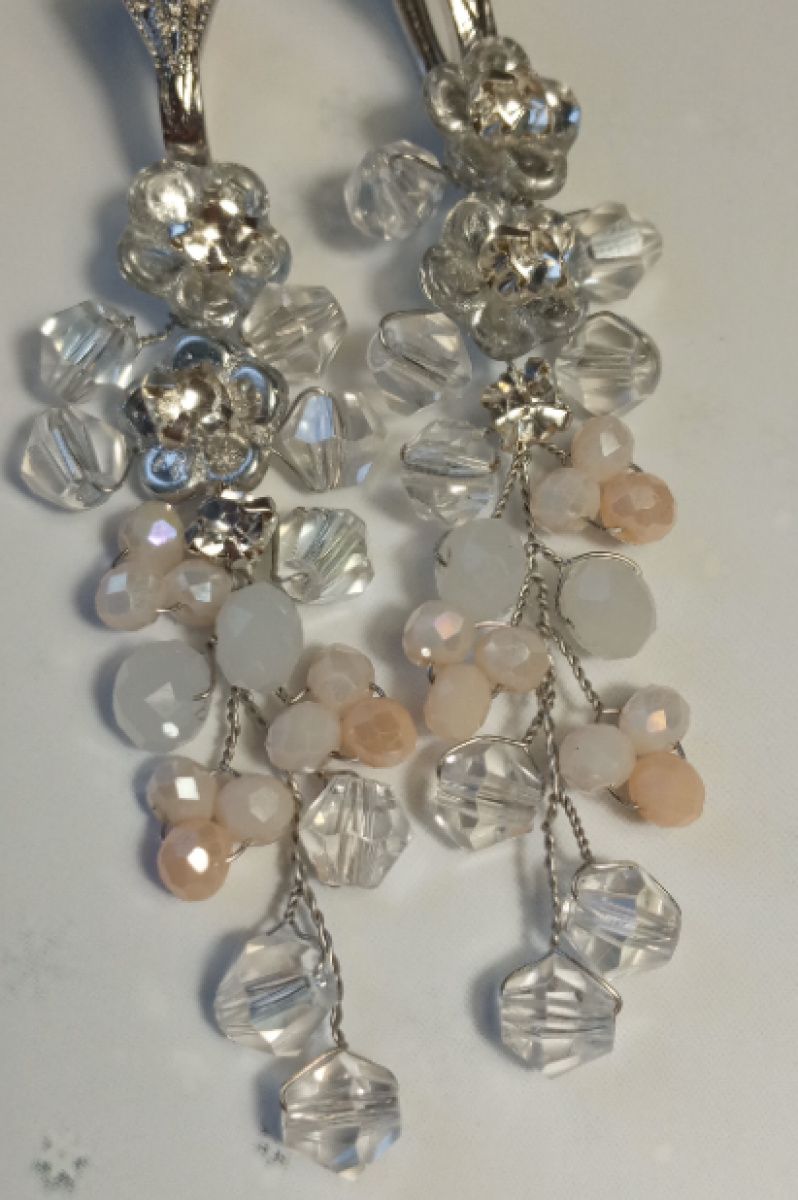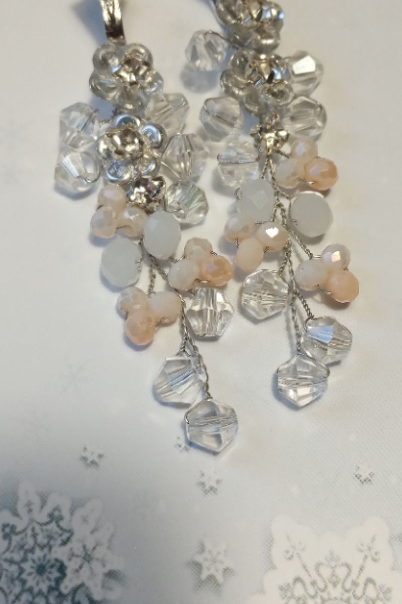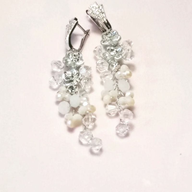 Сережки ручної роботи з намистин, стразів та скляних квітів. Швензи мед. сталь, з фіанітами, англ.замочок.