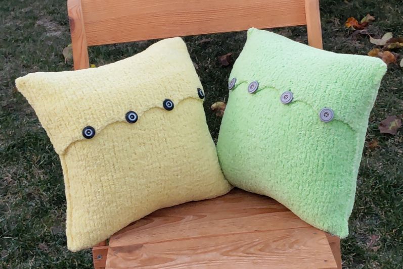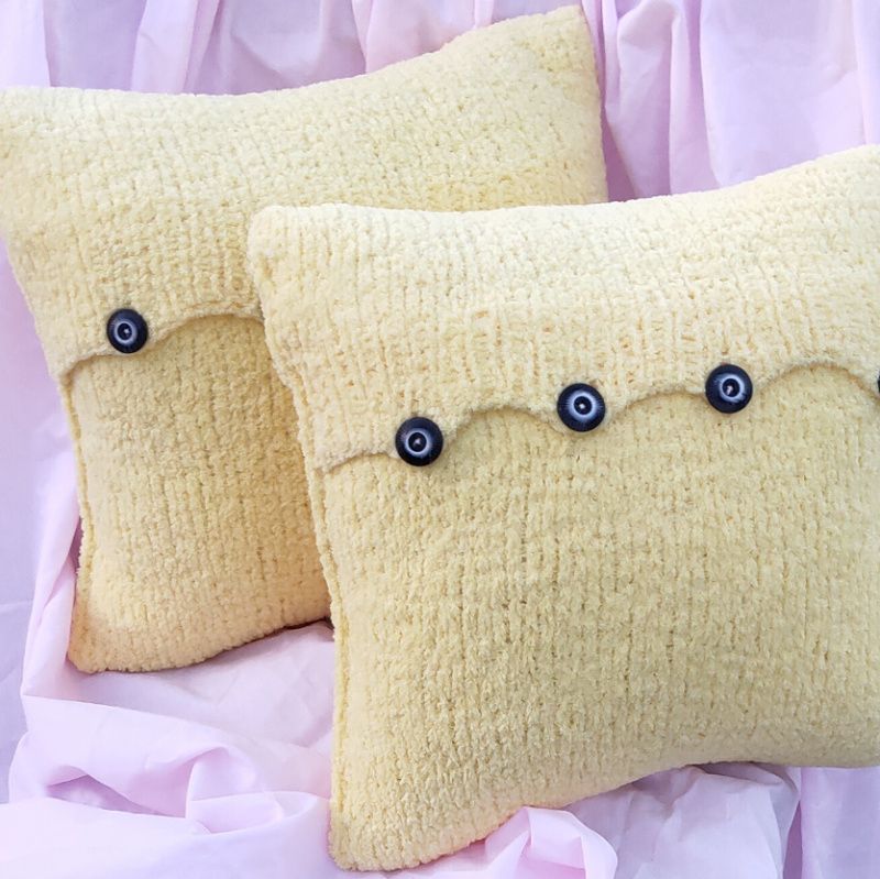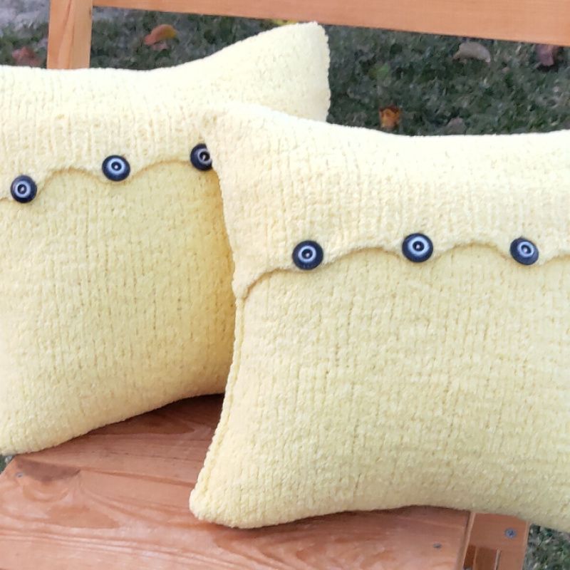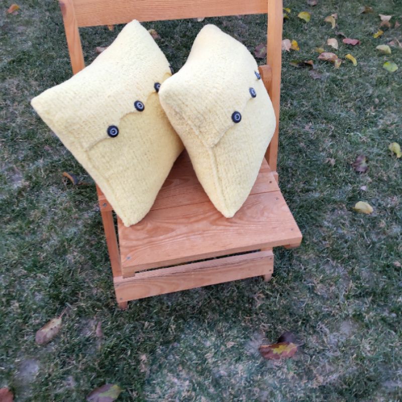 Подушка в'язана декоративна. Подушка основа з наповнювачем холлофайбер і в'язана наволочка з плюшевою пряжі на ґудзиках. Оригінальний подарунок на день народження, новосілля, подарунки співробітникам ... Прикрасить і оновить будь-який інтер'єр.