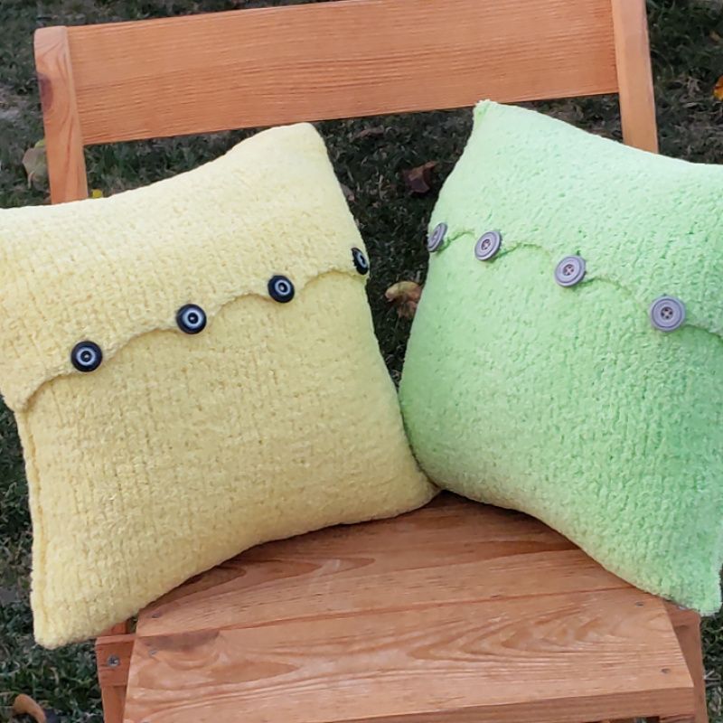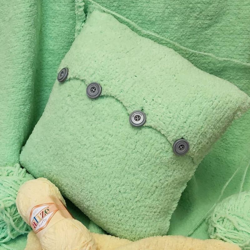 Подушка в'язана. Подушка-основа з наповнювач холлофайбер і плюшева в'язана наволочка на ґудзиках. Оновить і прикрасить будь-який інтер'єр. Оригінальний подарунок на день народження, новосілля, подарунки співробітникам, на весілля, день закоханих.