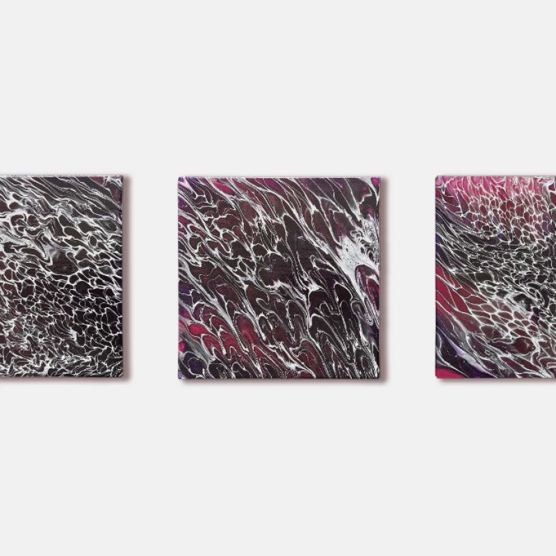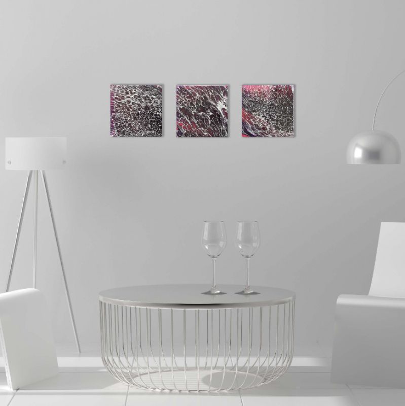 Картини виконані у техніці флюїд-арт акриловими фарбами. Абстракція. Триптих вигідно дивитиметься у сучасному інтер'єрі.