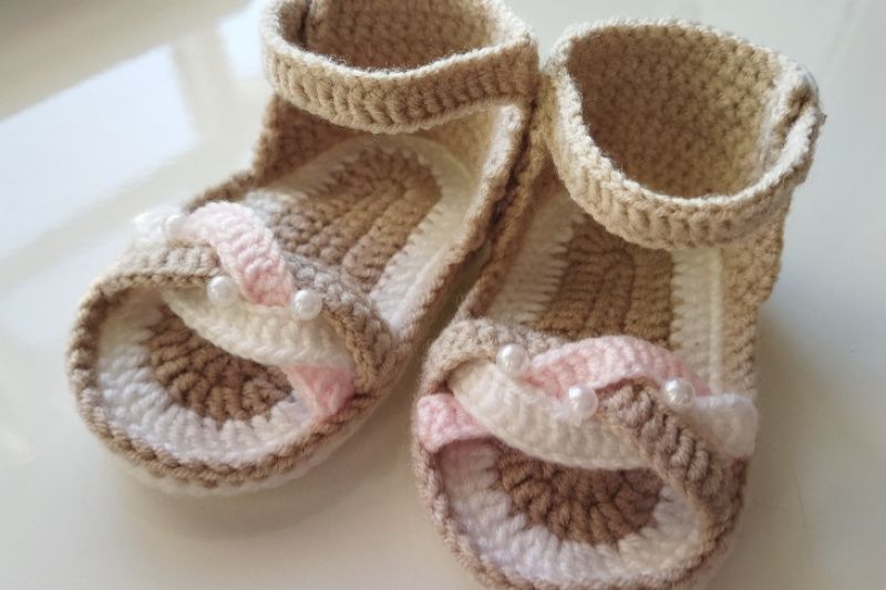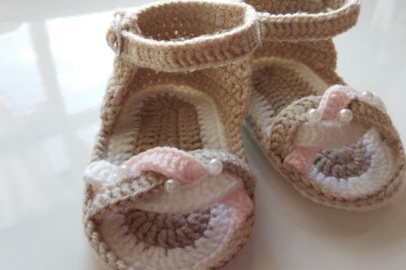 Дуже милі сандалі для дівчинки, в'язані гачком. Розмір підошви 11 см. Зручно і гарно прикрасять ніжки вашої малечі.