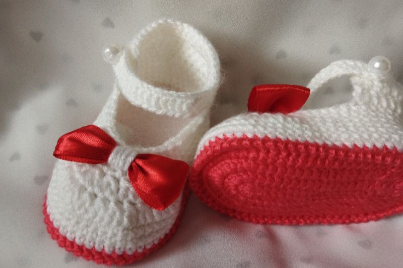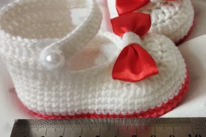Чудові в'язані туфельки для маленької принцеси. Розмір видно на фото.