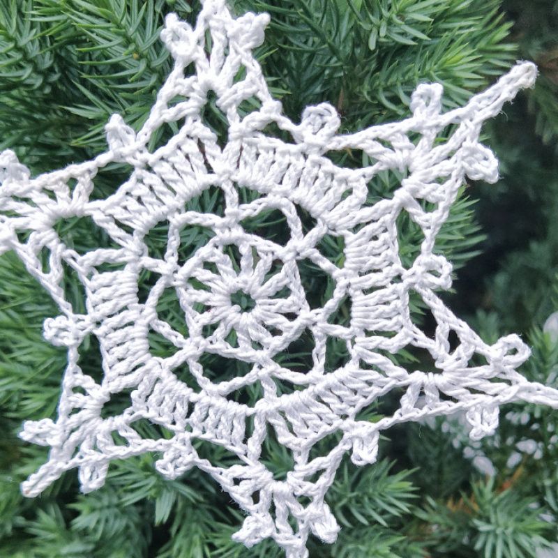 В'язана сніжинка на ялинку чи для декору інтер'єру. Добре накрохмалена, чудово тримає форму. Прослужить не один рік.