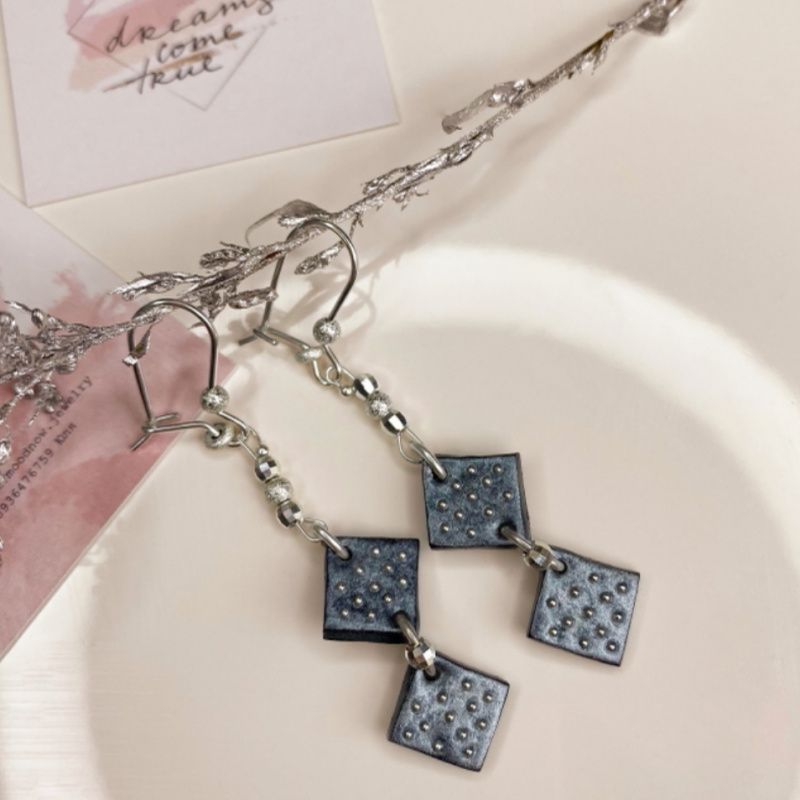 Срібні сережки з полімерної глини та срібними Шарм. Срібло 925 проба. Довжина сережок 6 см.