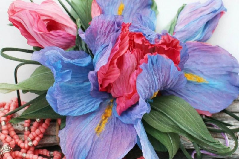 Про ірис складено багато легенд. Якось веселка, перш ніж розчинитися в небі, розсипалася на промінчики. Чудові уламки веселки впали на землю і проросли чудові квіти - іриси. Адже не даремно ірис – райдужне створення. Іриси - чудові квіти, які символізують дружбу, вірність та повагу. Якщо ви шукаєте спосіб надати своєму образу більше жіночності романтичності, то аксесуар у вигляді брошки - квітки стане відмінним для вас варіантом. Також ірис можна використовувати як підхоплення для штор. До вашої уваги представлений ірис авторської роботи. Ірис виконаний з натурального та штучного шовку, повністю ручне фарбування. Розмір квітки близько 15 см Квітка в наявності, в єдиному екземплярі!