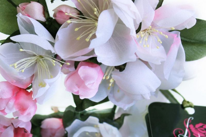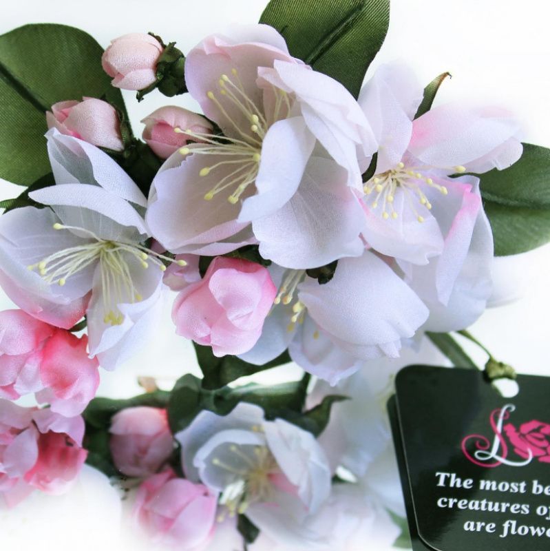 Коли дерева в світлий травневий день Доріжки обсипають білим кольором, І вітерець в алеї, повної світлом, Струмить листя мереживну тінь, Нехай буде світлим їх весняний день, Нехай їхні мрії розвіє білим кольором! Брошка з весняних квітів або шпилька в волосся прикрасить ніжну і романтичну леді і нікого не залишить байдужим! Квіти виконані з натурального італійського шовку. Елементи ручного фарбування. Довжина букетика 8-10см. Кріплення за бажанням