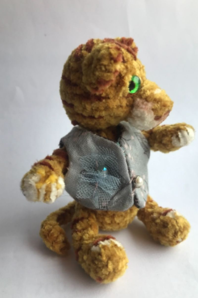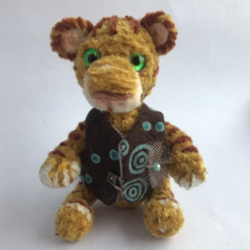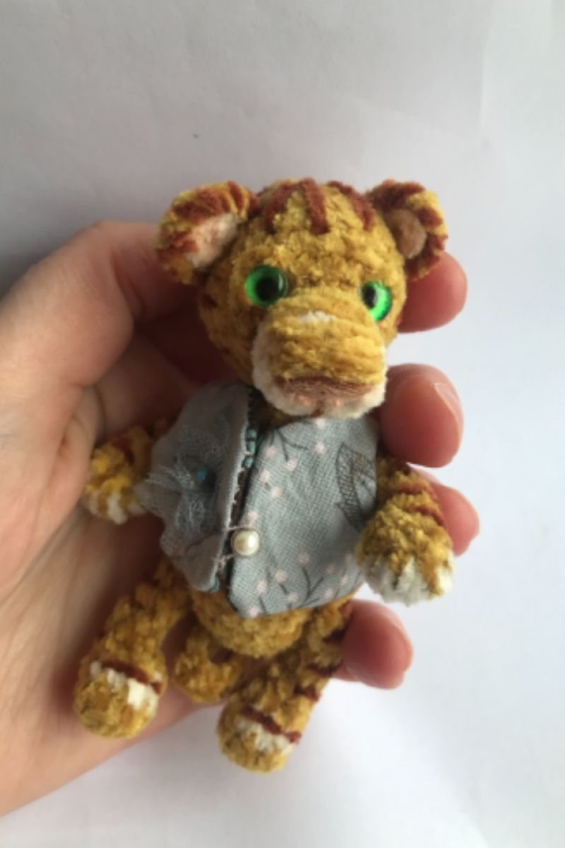 Тигрення. Мініатюра ручної роботи. Висота 9см.Ножки, ручки, голова-рухливі. Очі скляні