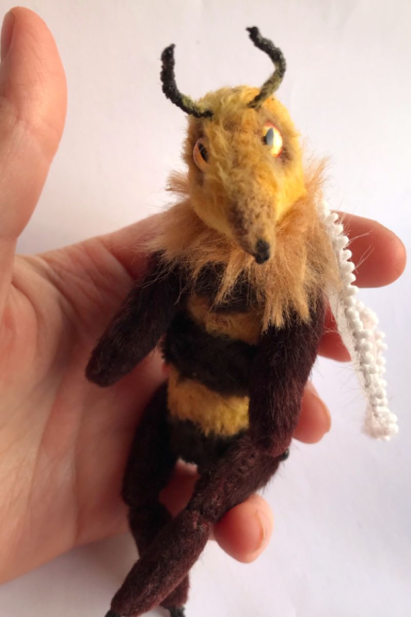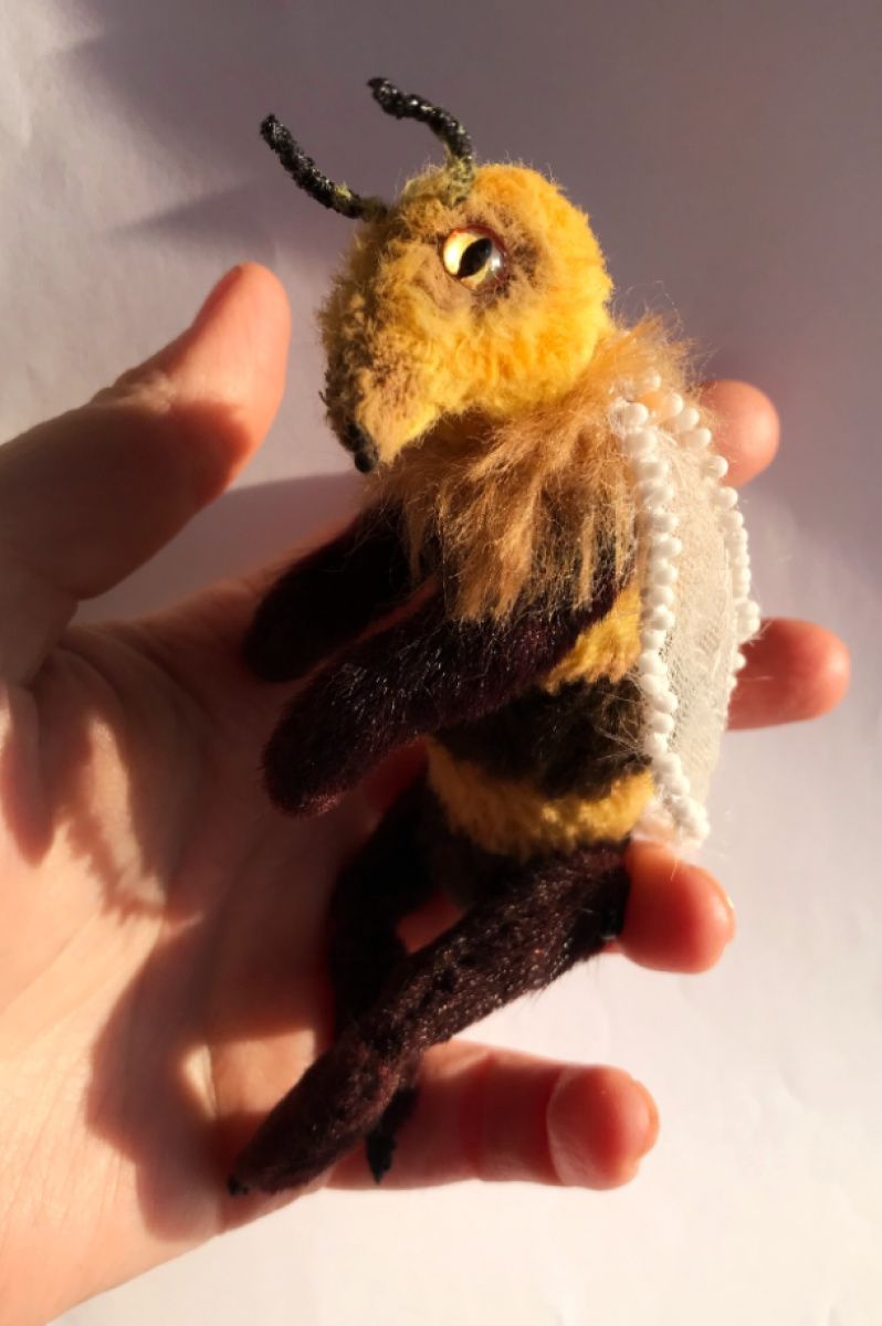 Бджілка у комбінованій техніці. Інтер‘єрна іграшка, що нікого не залишить байдужим.Яскрава, елегантна, тепла та затишна.
