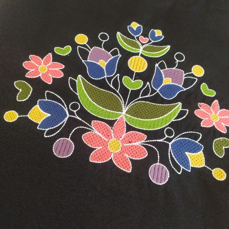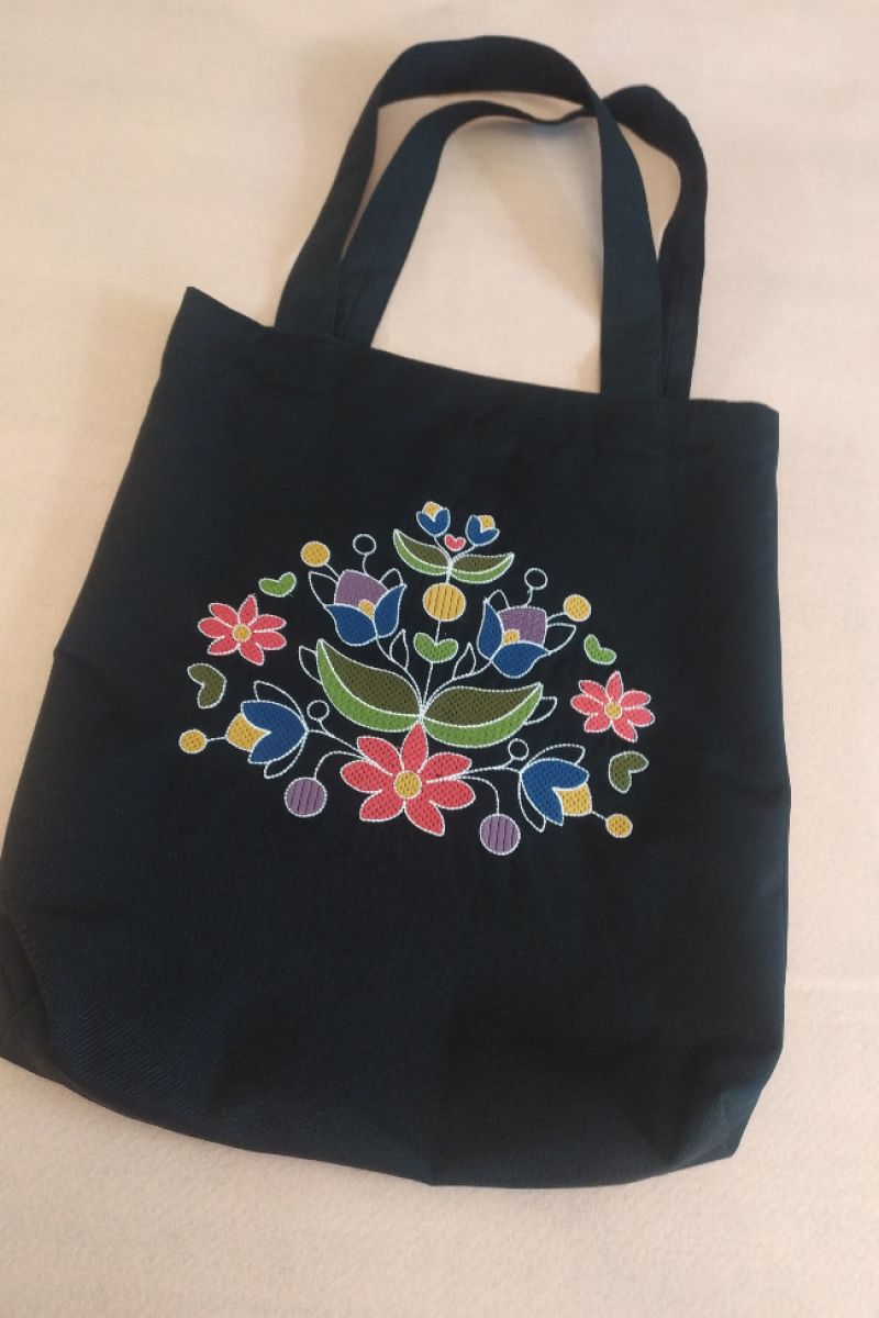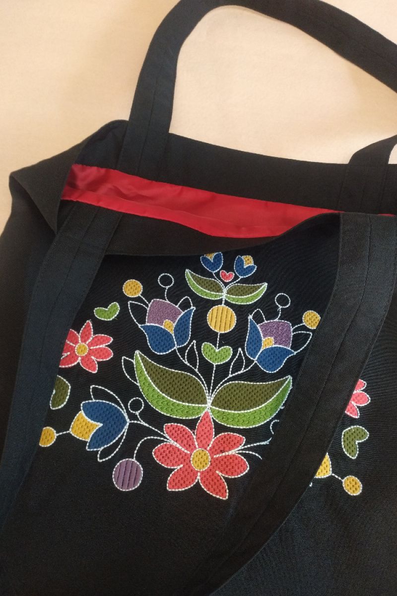 Торбинка оздоблена машинною вишивкою. На підкладці. Ручки довгі щоб носити на плечі.
