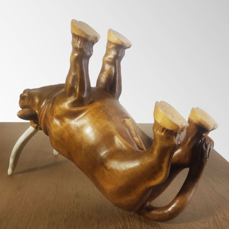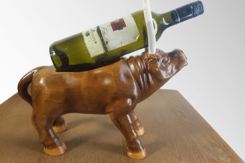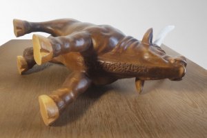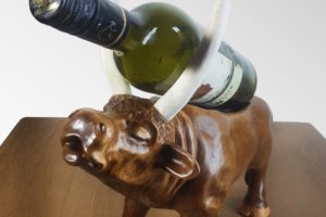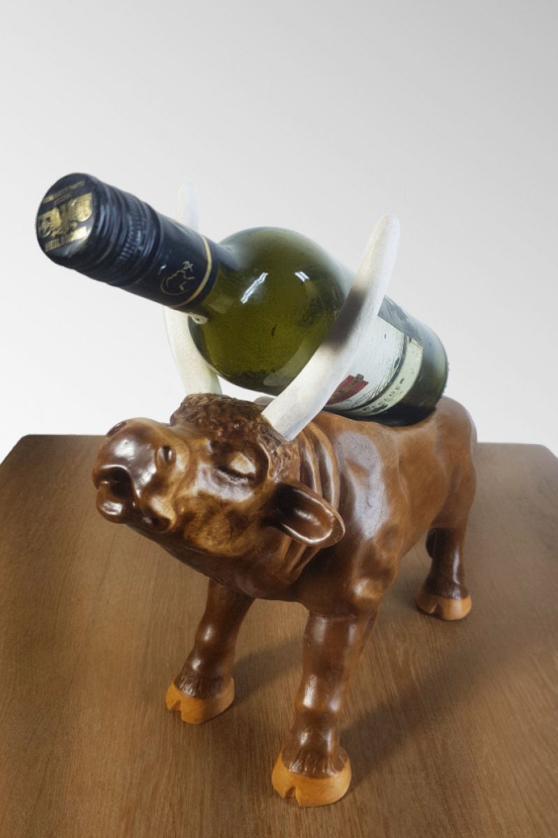 Оригінальний сувенір 'Бик' - це не просто скульптурне виріб ручної роботи, а ще й універсальна підставка під пляшку вина, яка також може виконувати функцію шкатулки для зберігання ювелірних виробів та біжутерії. Чудовий подарунок керівникові, директорові, мисливцеві або просто коханій людині або любителю тварин. Це відмінне рішення для будь-яких видів свята, будь то день народження, ювілей або річниця сімейного життя. 2021 рік - рік бика, тому даний виріб символічно як ніколи. Дерев'яний сувенір «Бик» послужить ексклюзивним прикрасою будь-якого інтер'єру, стане частиною оригінального декору, привнесе в будь-яке приміщення елемент мистецтва. Це не просто hand made, це художнє різьблення по дереву, сучасна скульптура зроблена руками професійного майстра. Виготовлено з натурального дерева (вільха). Рогу, виконані з кістки роги лося. Декоративне покриття складається з морилки по дереву і меблевого синтетичного лаку. Купити унікальний якісний сувенір за розумну ціну в наш час не так просто, тому пропонуємо Вам звернути свою увагу і на інші наші роботи.