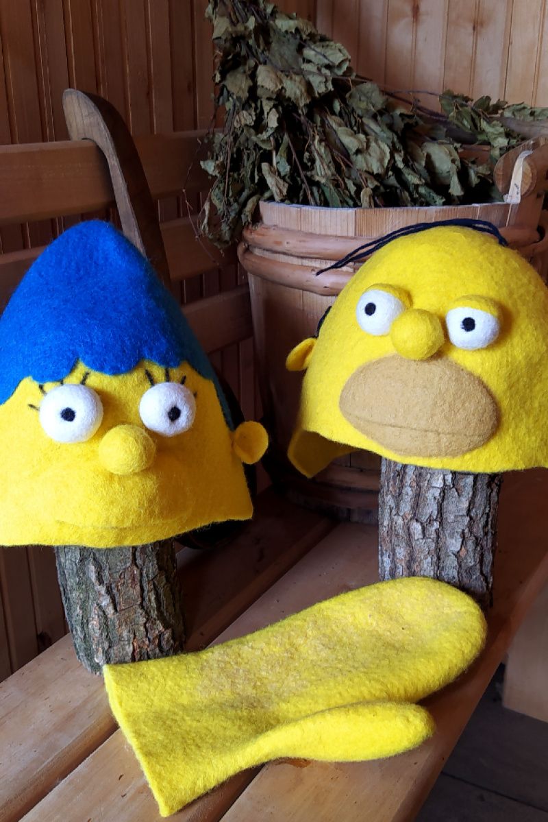 Похолодало. Поэтому -"Идите в баню!" Набор банный, валяный. Сделан из шерсти, состоит из мужской и женской шапочки и варежки, одна сторона которой имеет слегка шероховатую поверхность для лучшего эффекта мочалки.