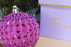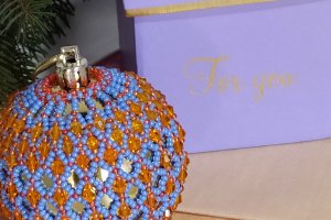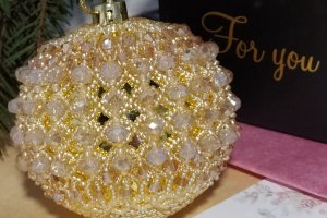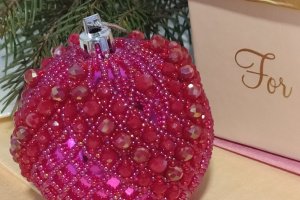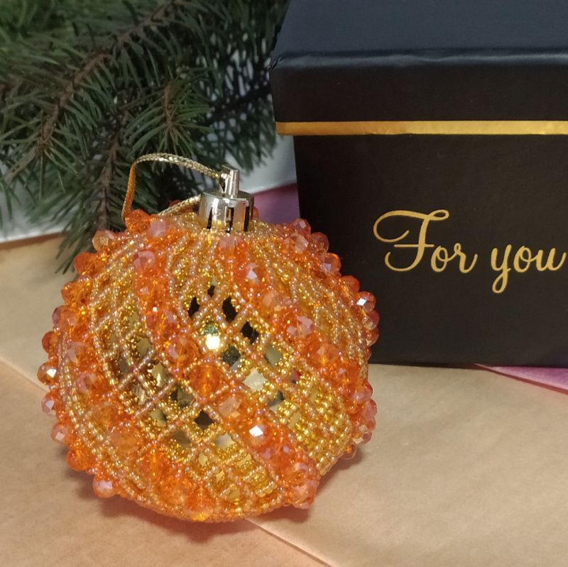 Новорічна іграшка ручної роботи. Задекорована в техніці бісероплетіння бісером та намистинами. Діаметр кулі 7 см. Тільки 1 екземпляр.