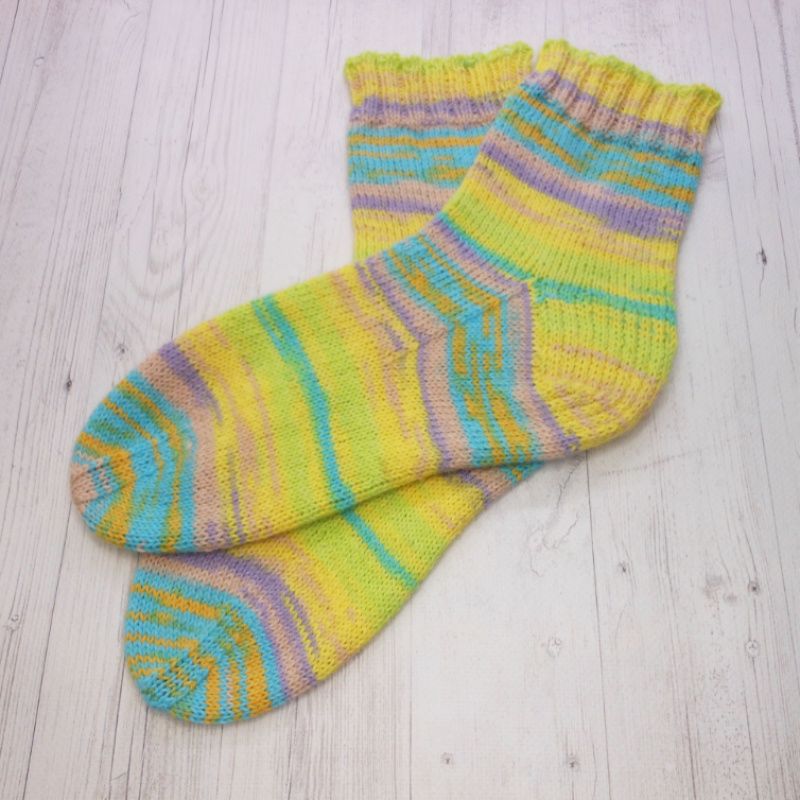 Шкарпетки жіночі "Фруктово-мармеладні". Якщо ви любите що ваші ніжки були в теплі і красі, то ці шкарпетки створені саме для вас. Шкарпетки пов'язані вручну на спицях з якісної італійської шкарпетки, п'ята укріплена. Шкарпетки теплі, м'які ідеально підійдуть для затишних домашніх вечорів. Підходять для носіння у взутті. Розмір 36-37 Рекомендації щодо догляду: ручне прання в теплої воді. Сушити горизонтально. Не викручувати, не вибілювати, не сушити у машинах.