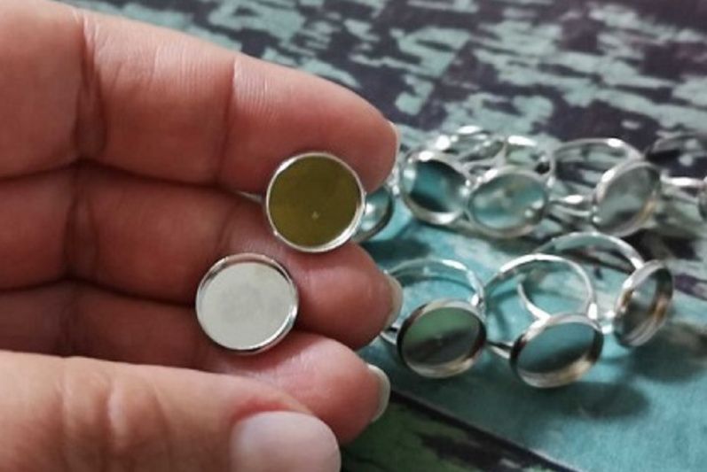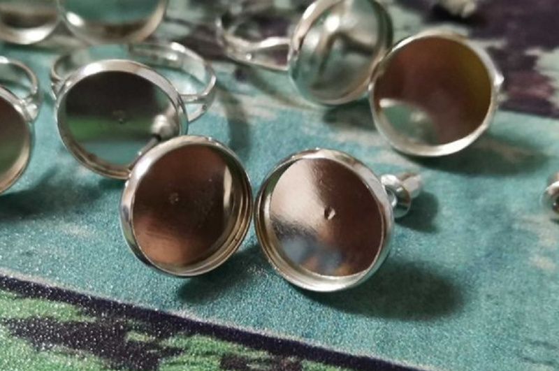 Заготовки для створення прикрас. Кільця і сережки гвоздики. Підійдуть для заливки епоксидною смолою або мікровишівкі. Внутрішній діаметр 14 мм. У кілець регулюється розмір. Колір - срібло. В наявності 10 кілець і 5 пар сережок.