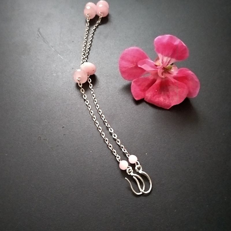 Довгі сережки на срібних ланцюжках з морганітом і рожевим кварцом. Швензи на сережках 925 проби. Сережки продаються у подарунковій упаковці. Довжина сережок 14см.