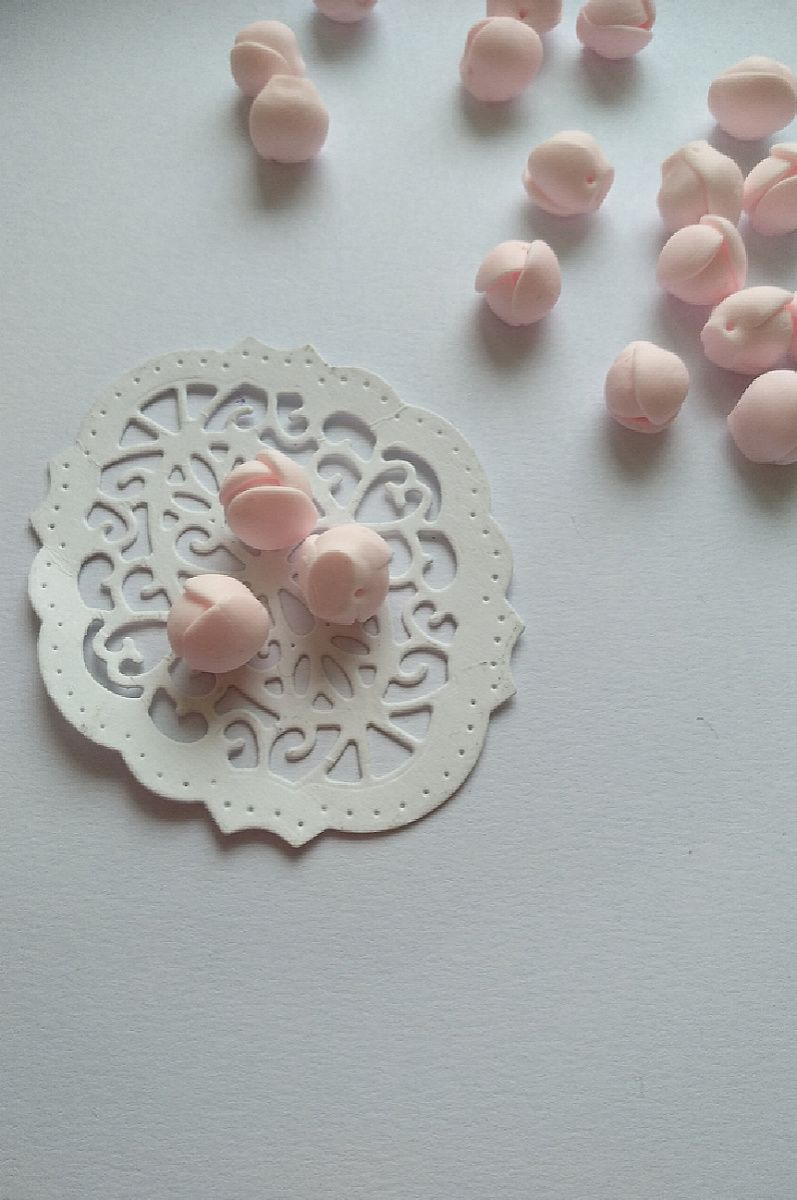 Чарівні ніжні пуп'янки з полімерної больгійской глини розмір 0,5 см. Продаються комплектом 10штук. При замовленні від 30 штук оптова ціна 2гр. Бутони можна використовувати для збирання прикрас, весільної фурнітури, створення весільних бокалів, прикраса одягу, взуття.