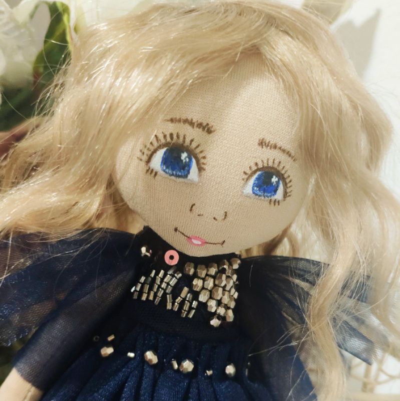 Лялька виконана з текстилю, якісних тканин, сукня розшита бісером, личко розписано акриловими фарбами. Волосся натуральні (коза). До ляльки додається паспорт з фото, індивідуальним номером і датою народження) Вона стане кращою подружкою дівчинці і прикрасить будь-яку кімнату!